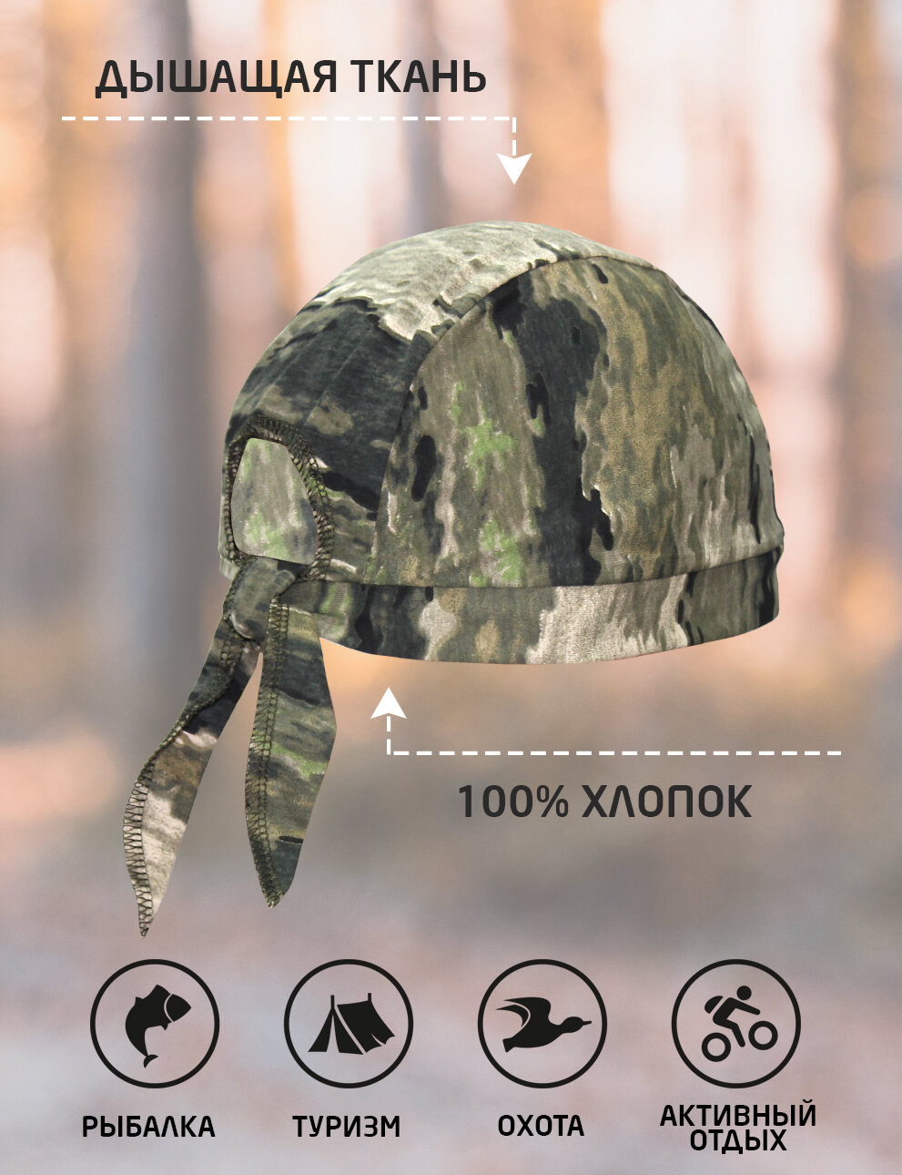 Бандана Компания БВР камуфлированная трикотажная для взрослых и детей, размер 54-57, лес