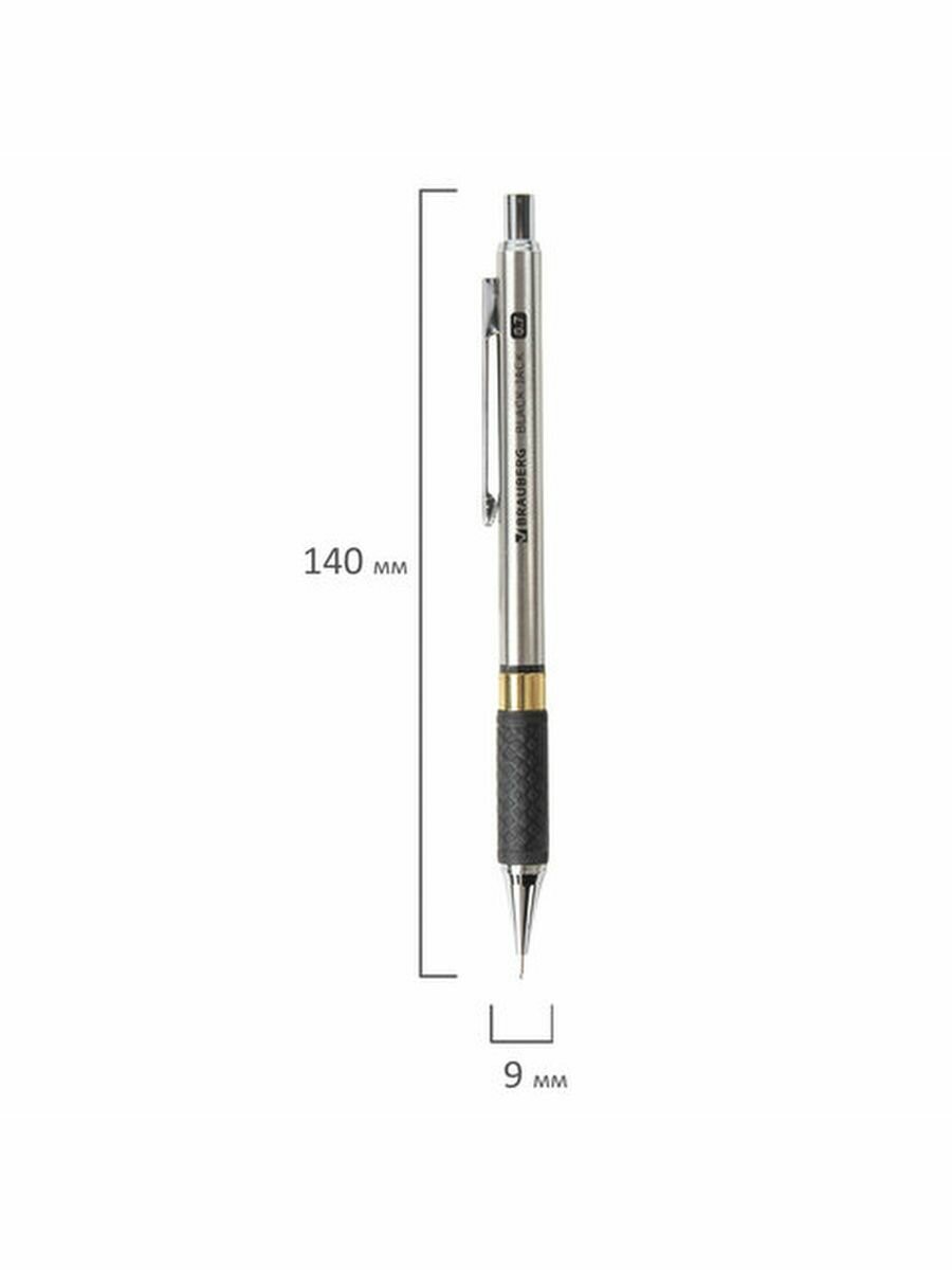 Карандаш механический 0,7 мм, BRAUBERG "Black Jack", металлический корпус, ластик, резиновый грип, 180467 (цена за 1 ед.товара)