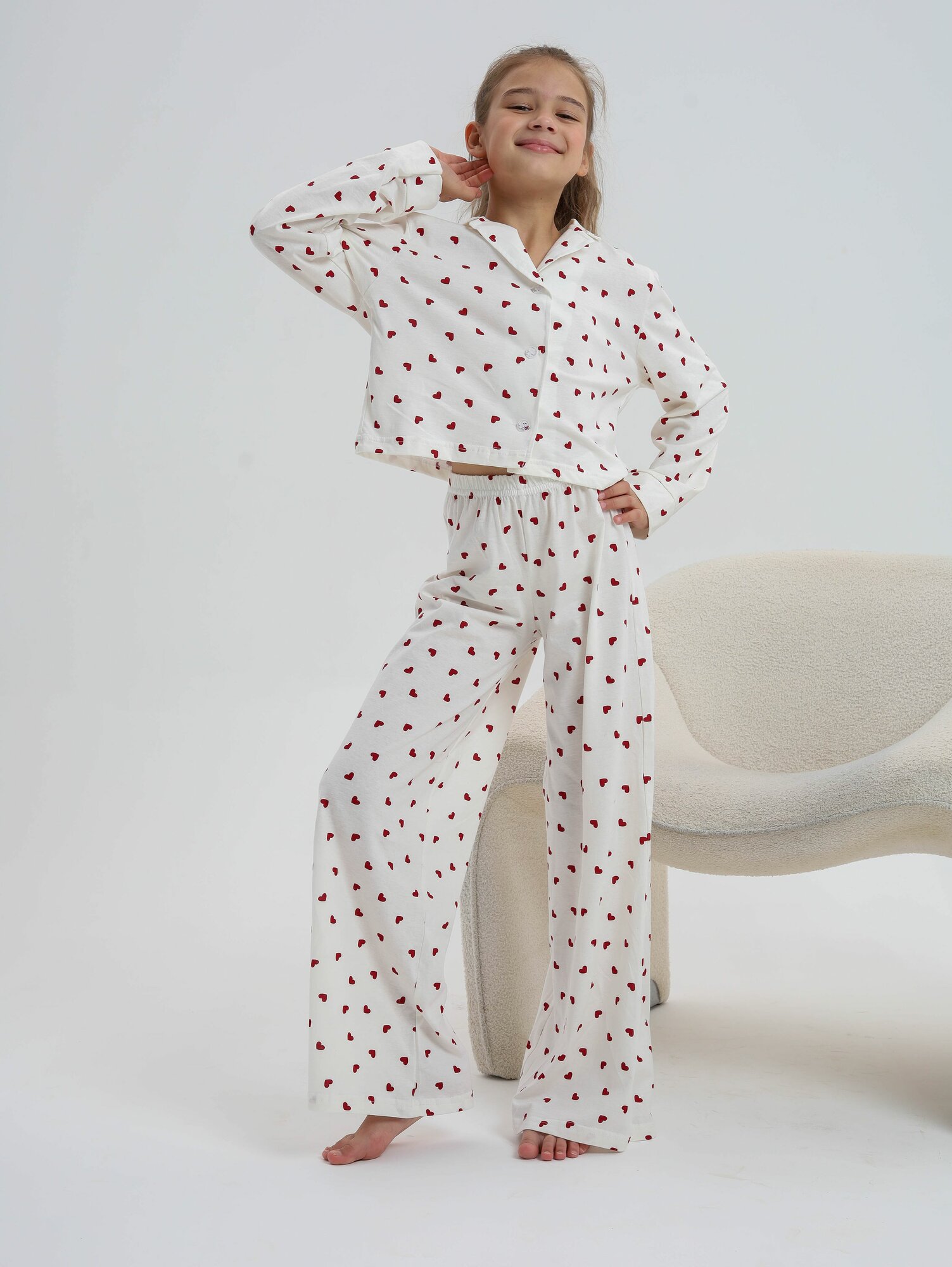 Пижама Митра Осень-зима 2024, размер 134, сердечки красные