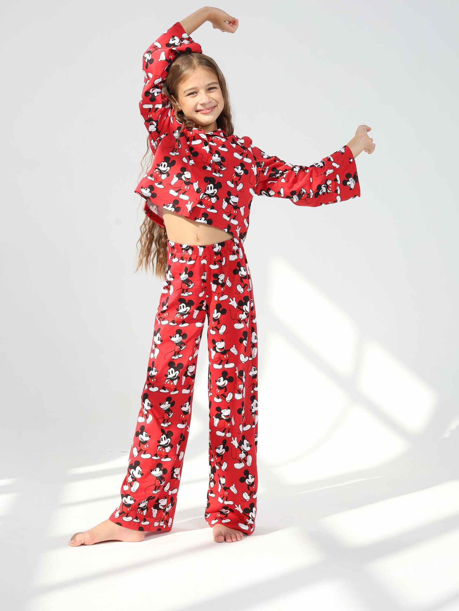 Пижама Митра Осень-зима 2024, размер 134, сердечки красные