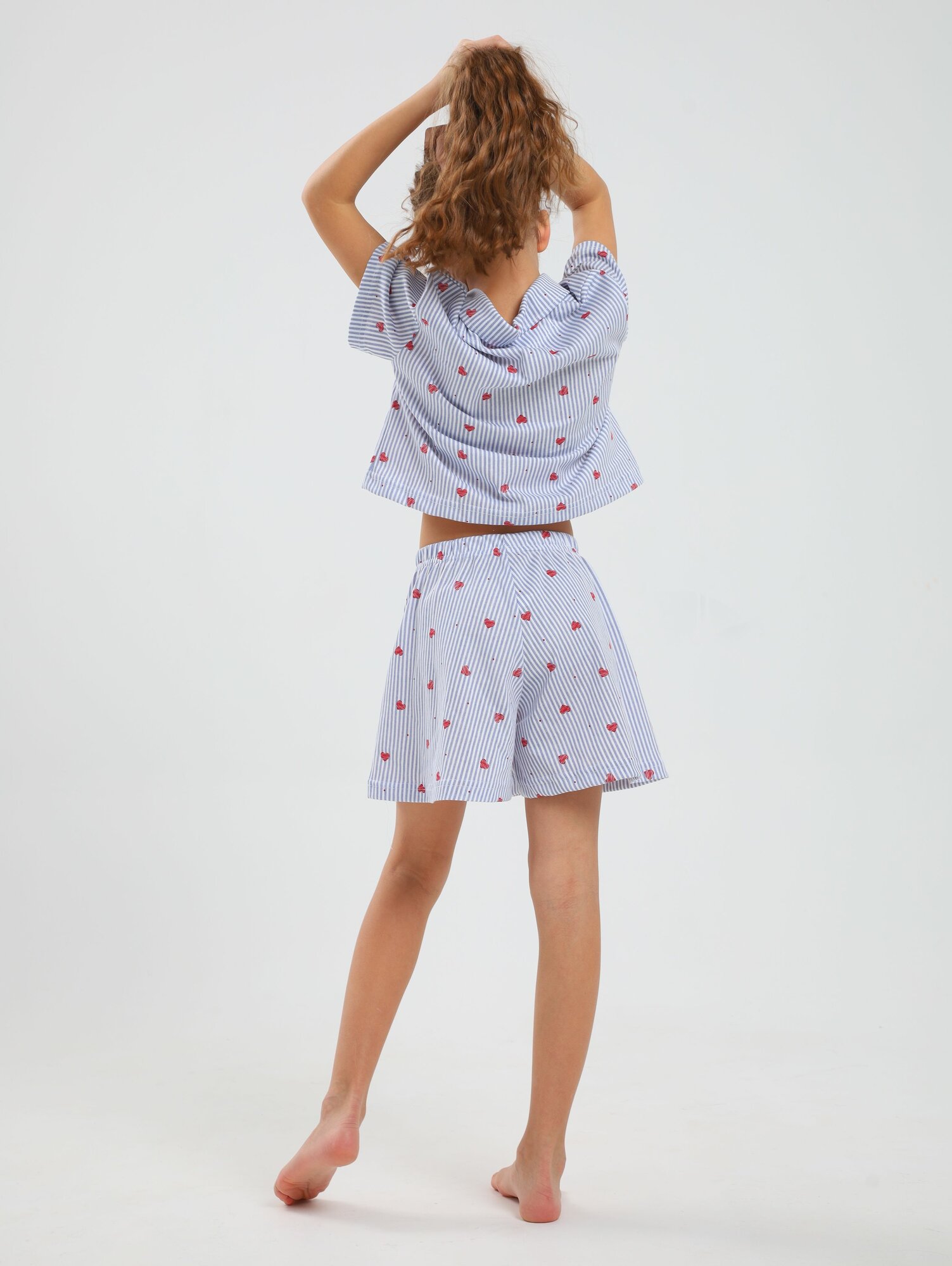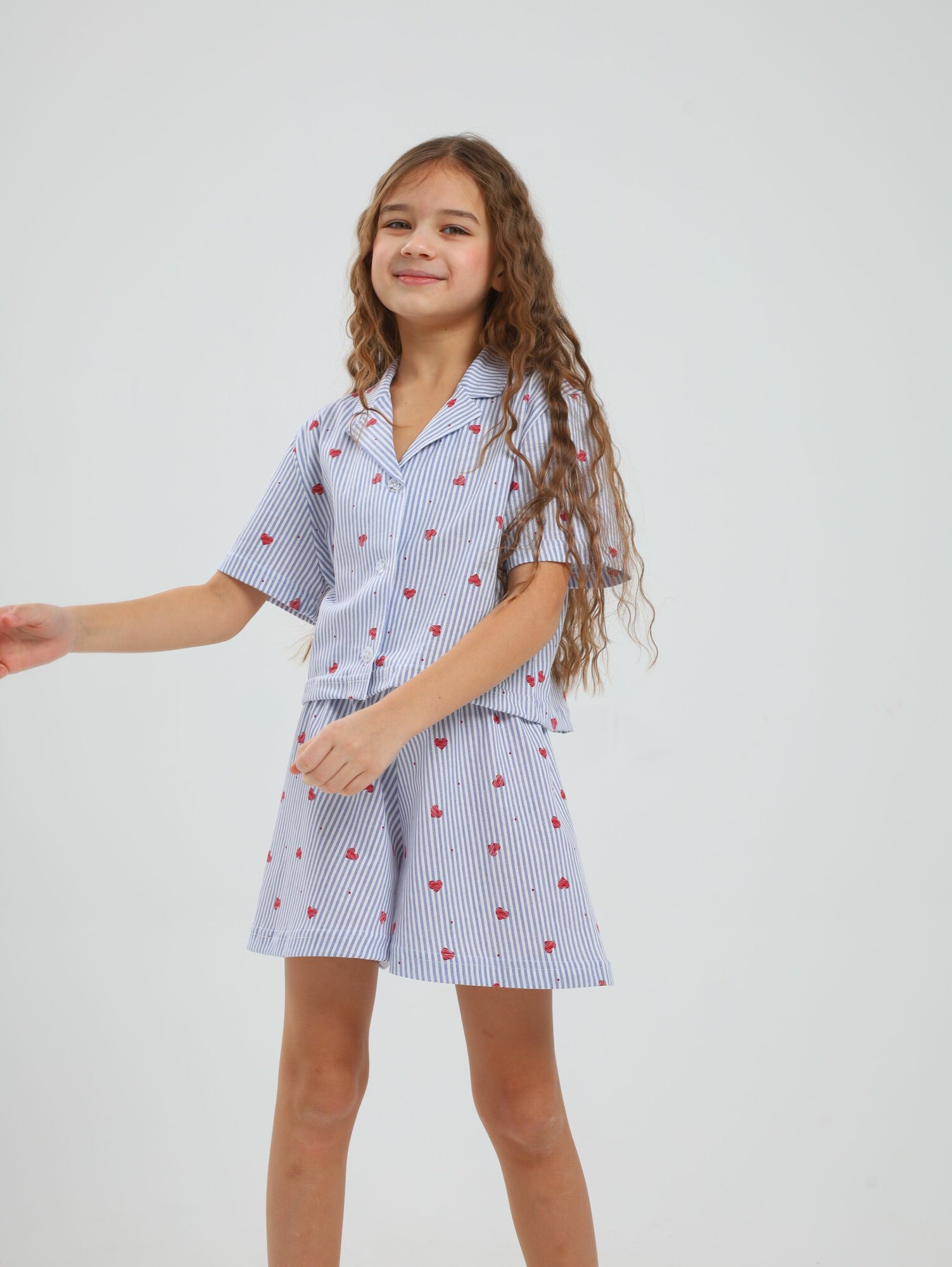 Пижама Митра Осень-зима 2024, размер 134, сердечки красные