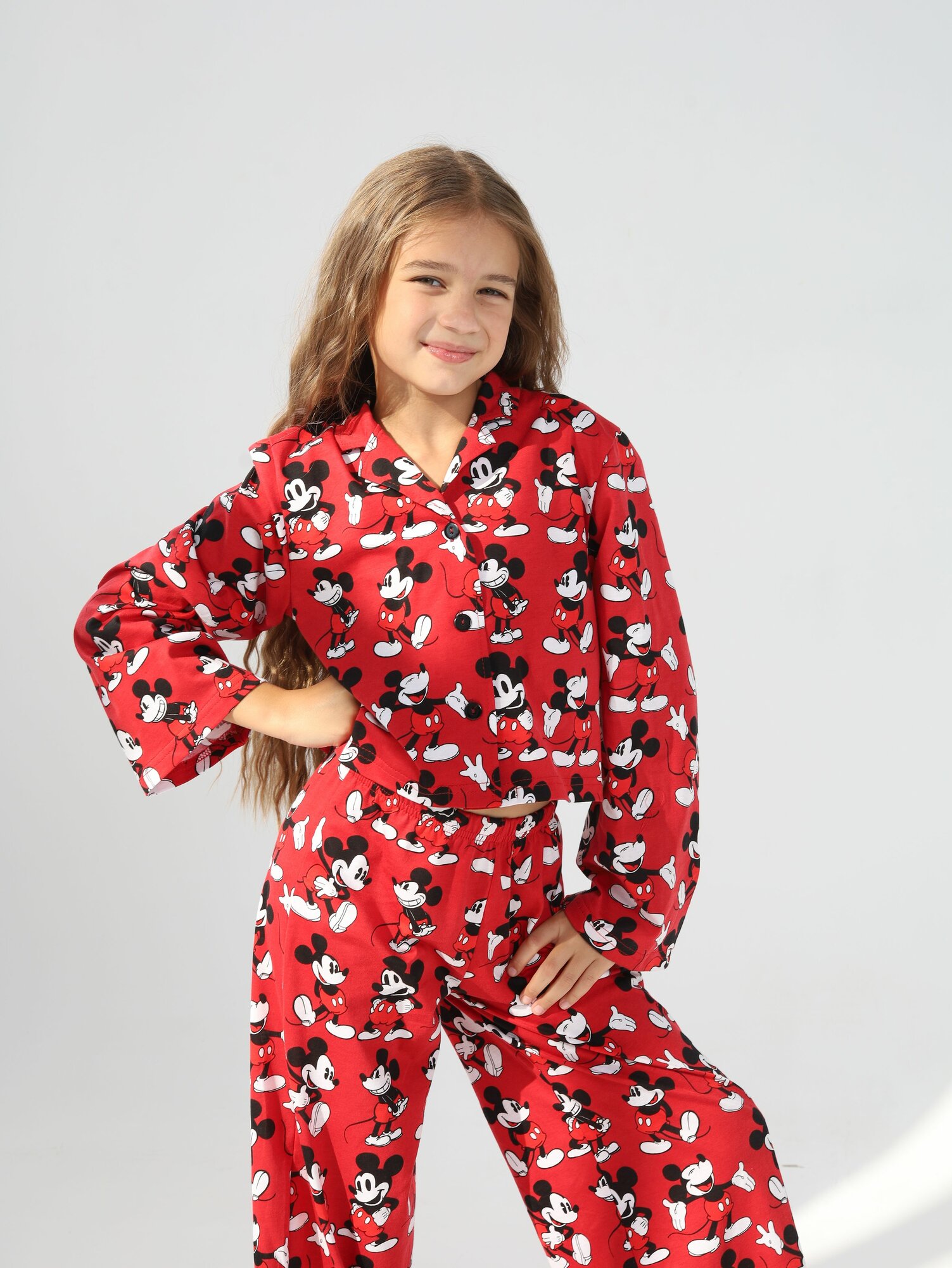 Пижама Митра Осень-зима 2024, размер 134, сердечки красные