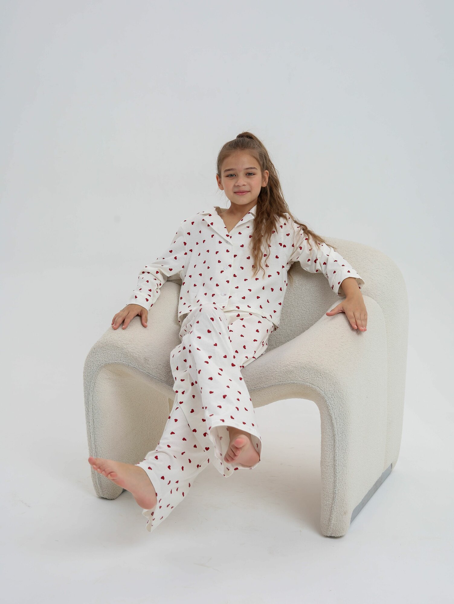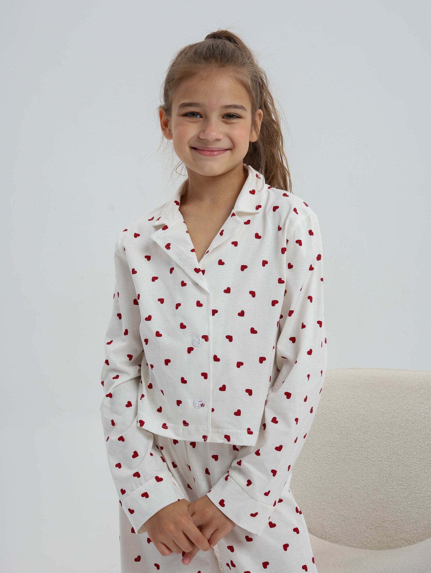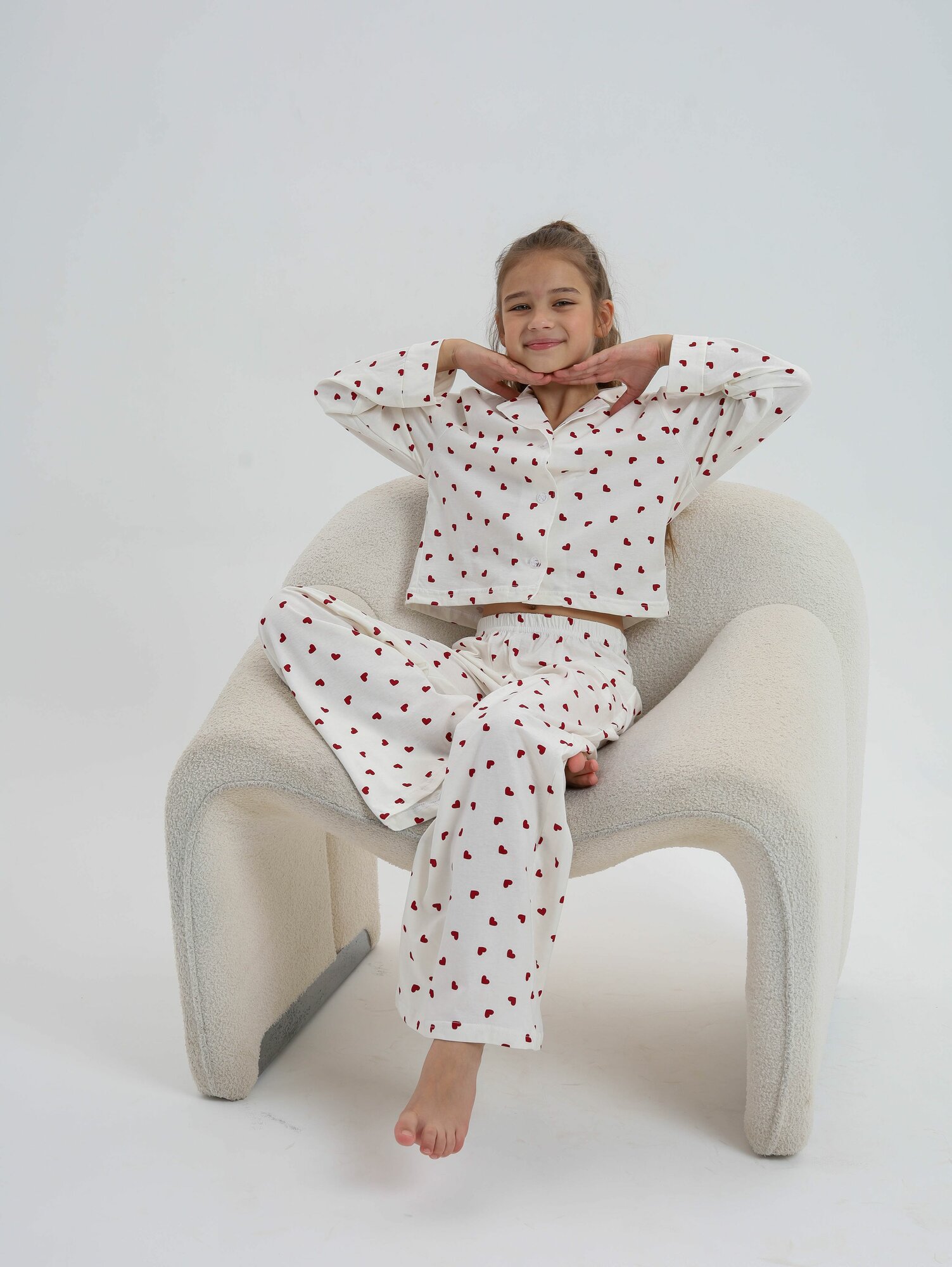 Пижама Митра Осень-зима 2024, размер 134, сердечки красные