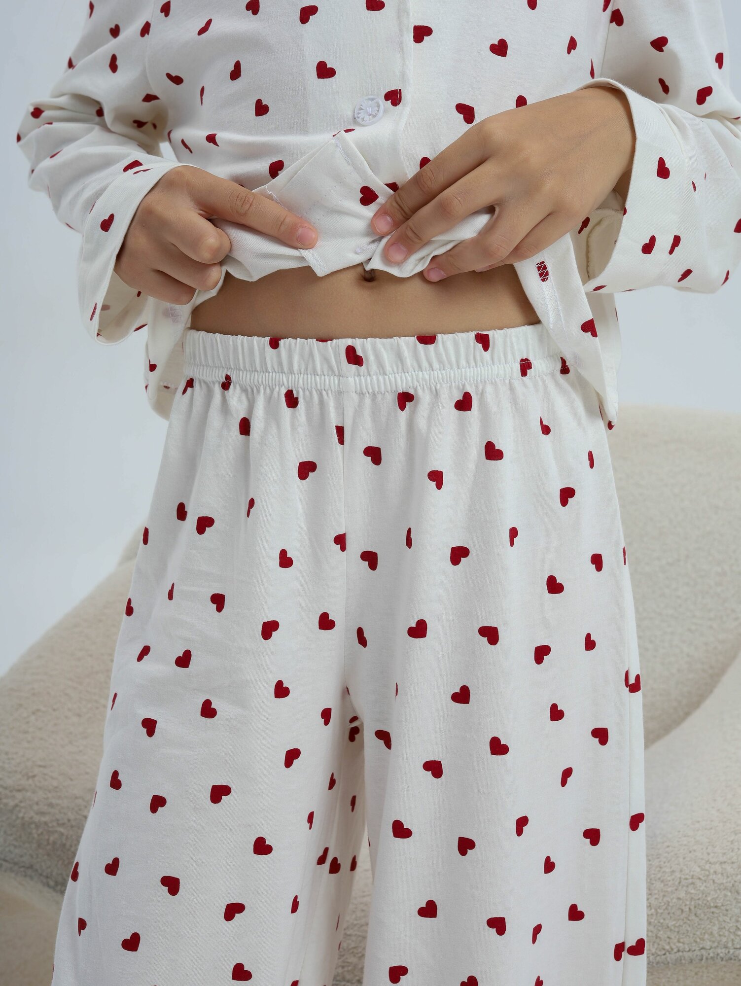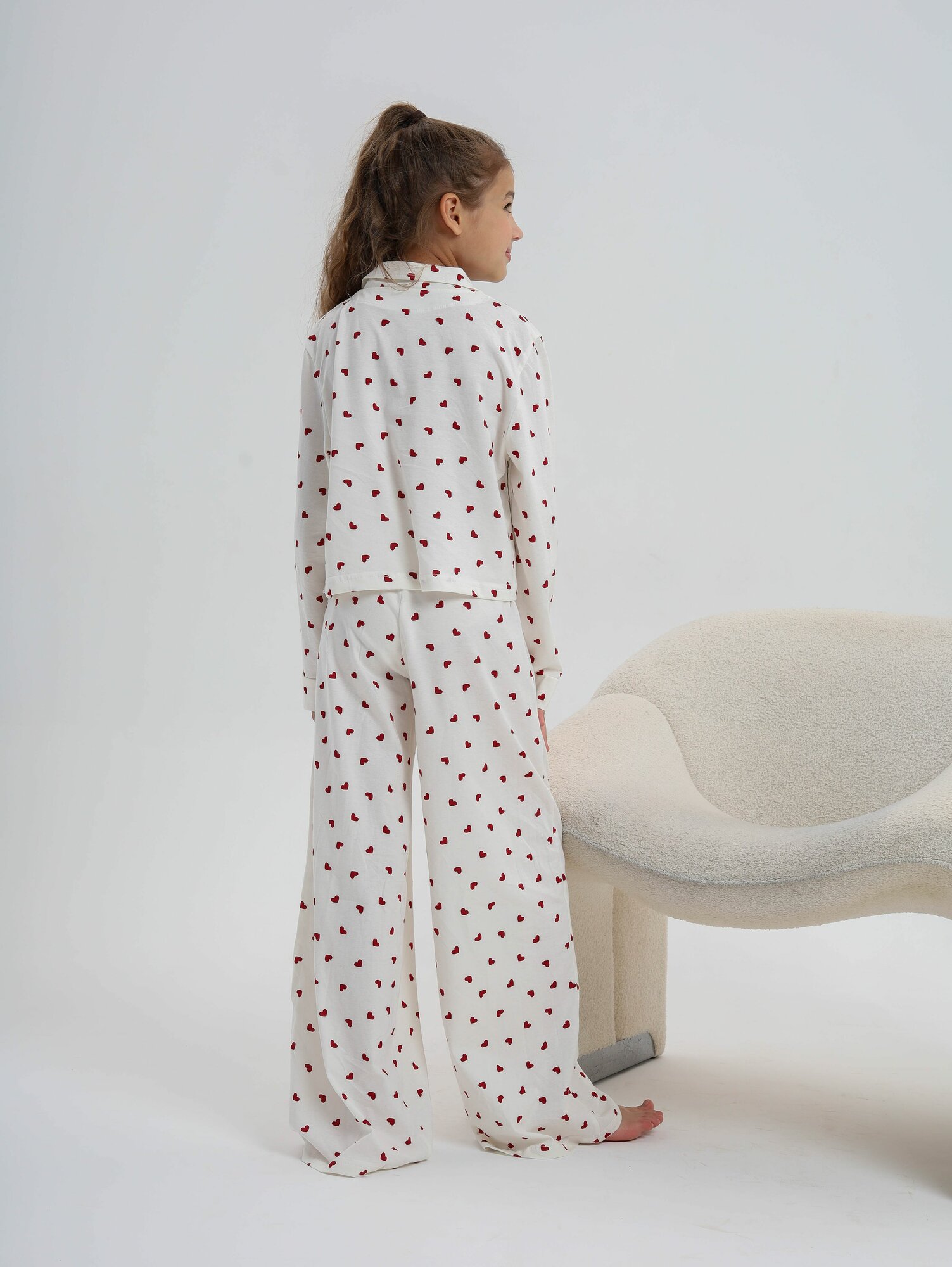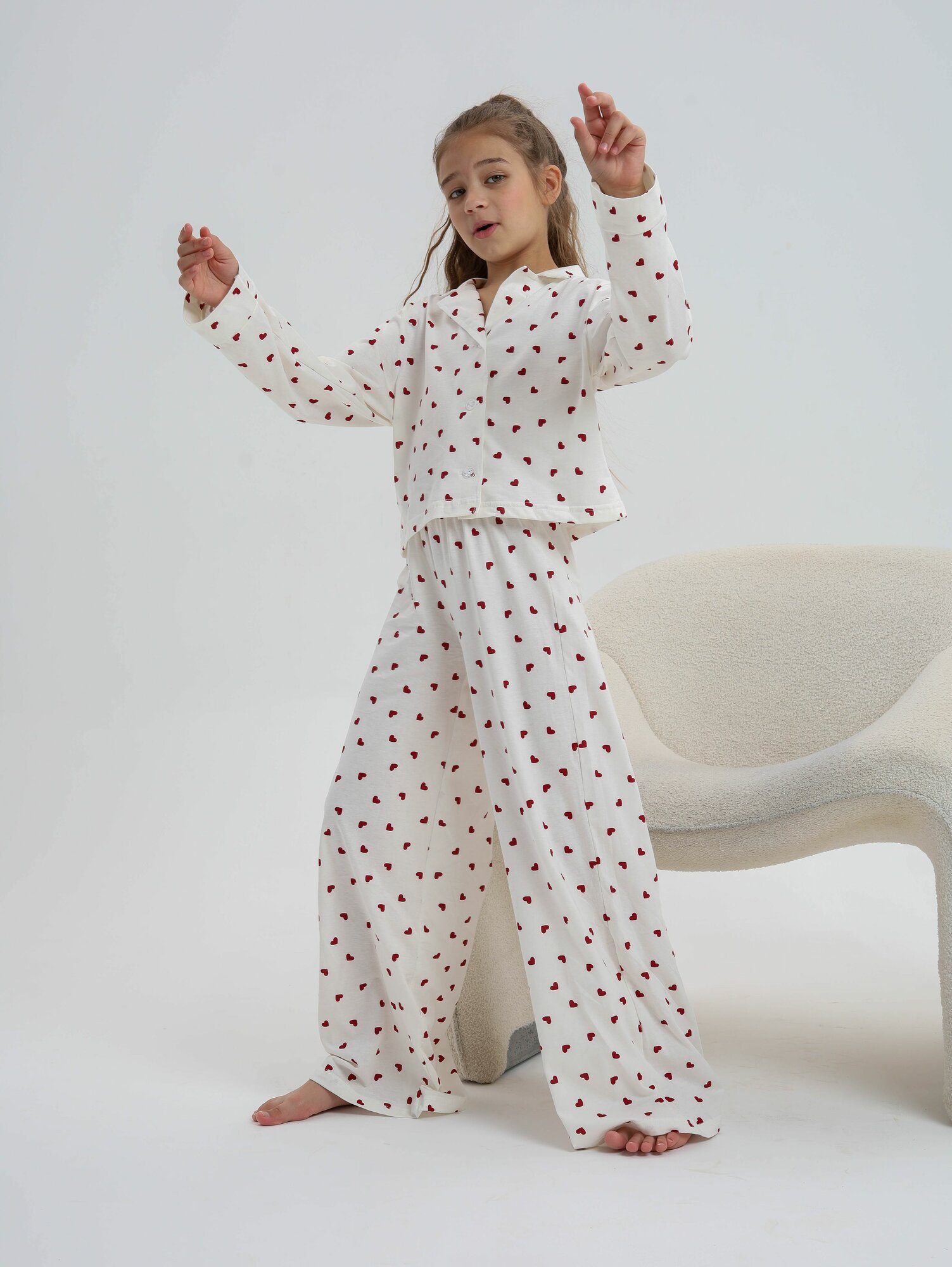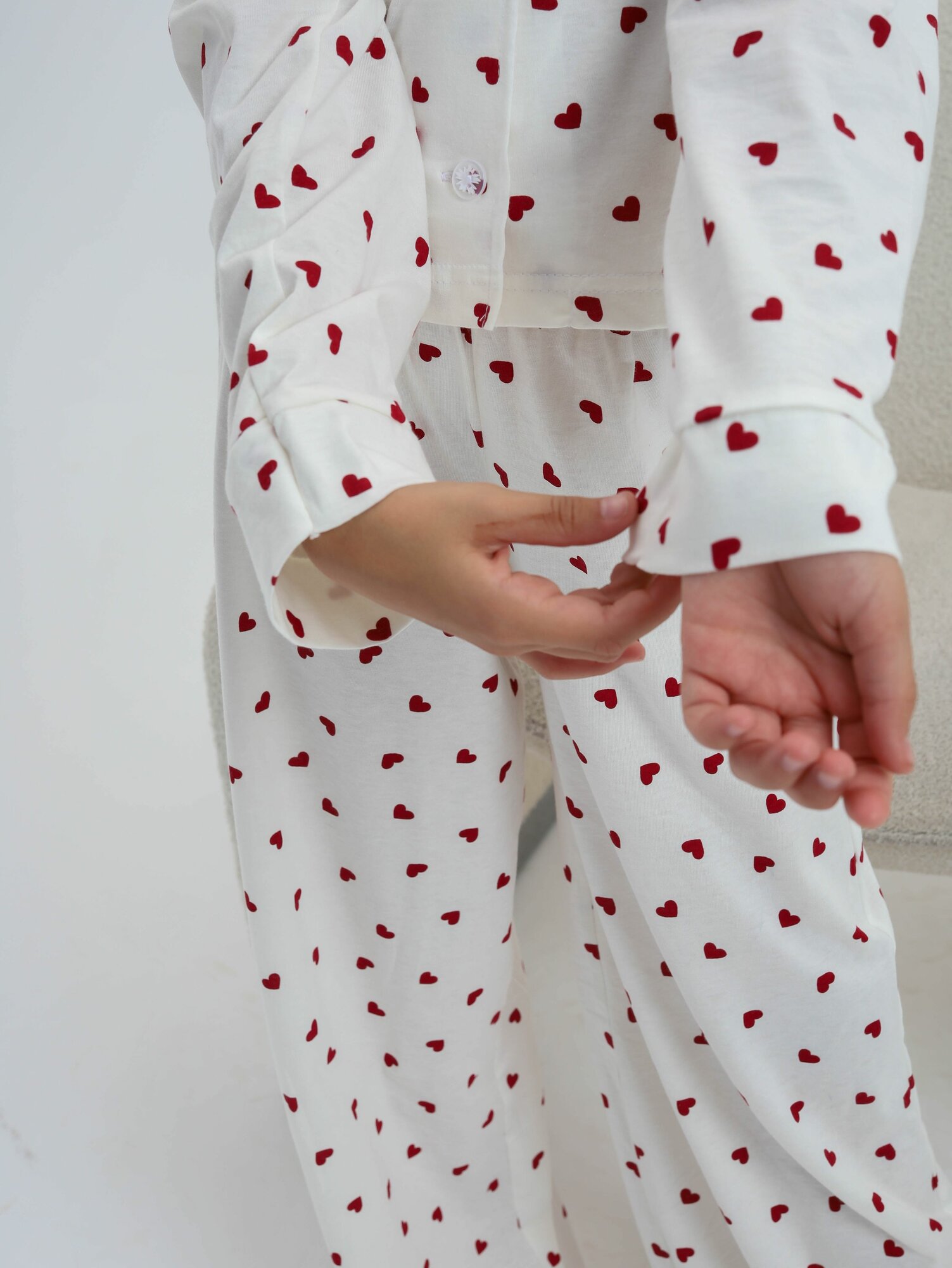 Пижама Митра Осень-зима 2024, размер 134, сердечки красные