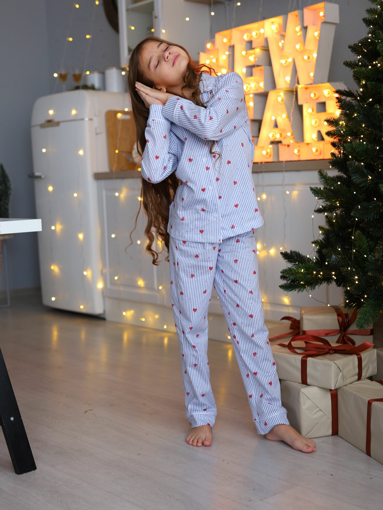 Купить Пижама Митра Осень-зима 2024, размер 134, сердечки красные