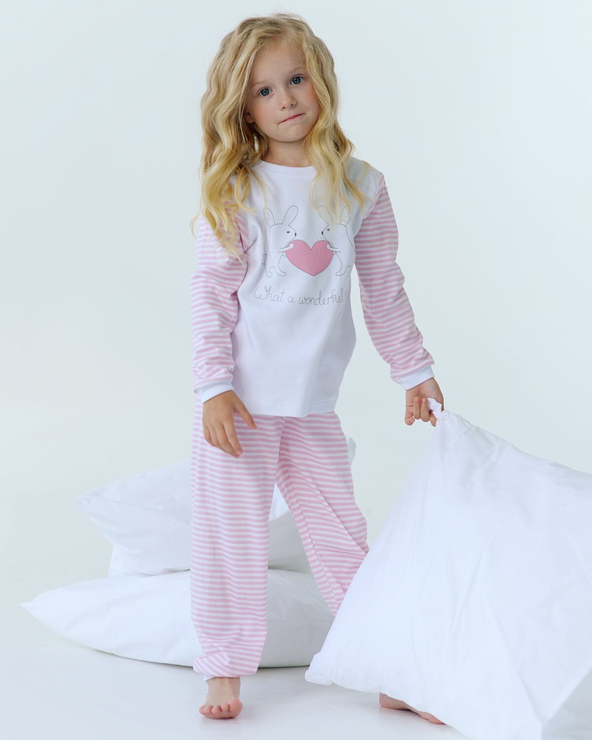 Пижама Фабрика Бамбук, размер 122-128, белый, розовый