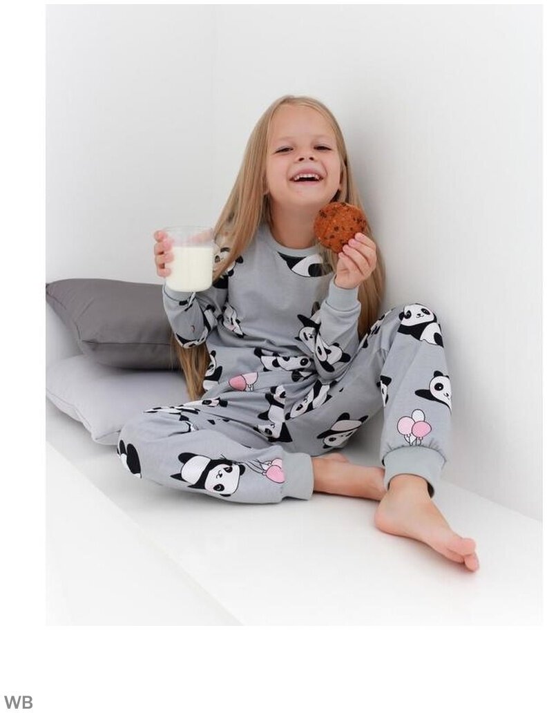Пижама, размер Пижама (джемпер, брюки) KAFTAN "Панды" рост 122-128 (34), серый