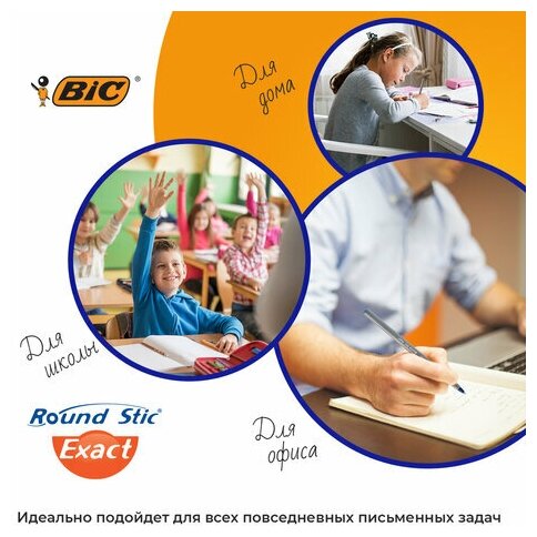 Ручки шариковые синие BIC Round Stic Exact, тонкий стержень для точного письма, 8 штук в упаковке