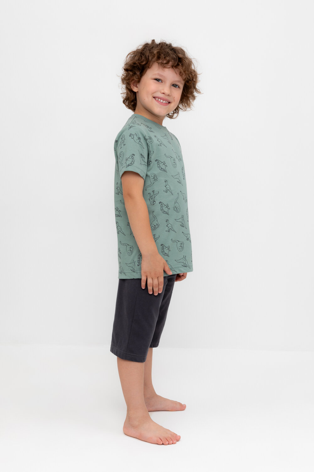 Пижама crockid К 1614/динозавры на зеленом,черный, размер 68/134, зеленый, черный