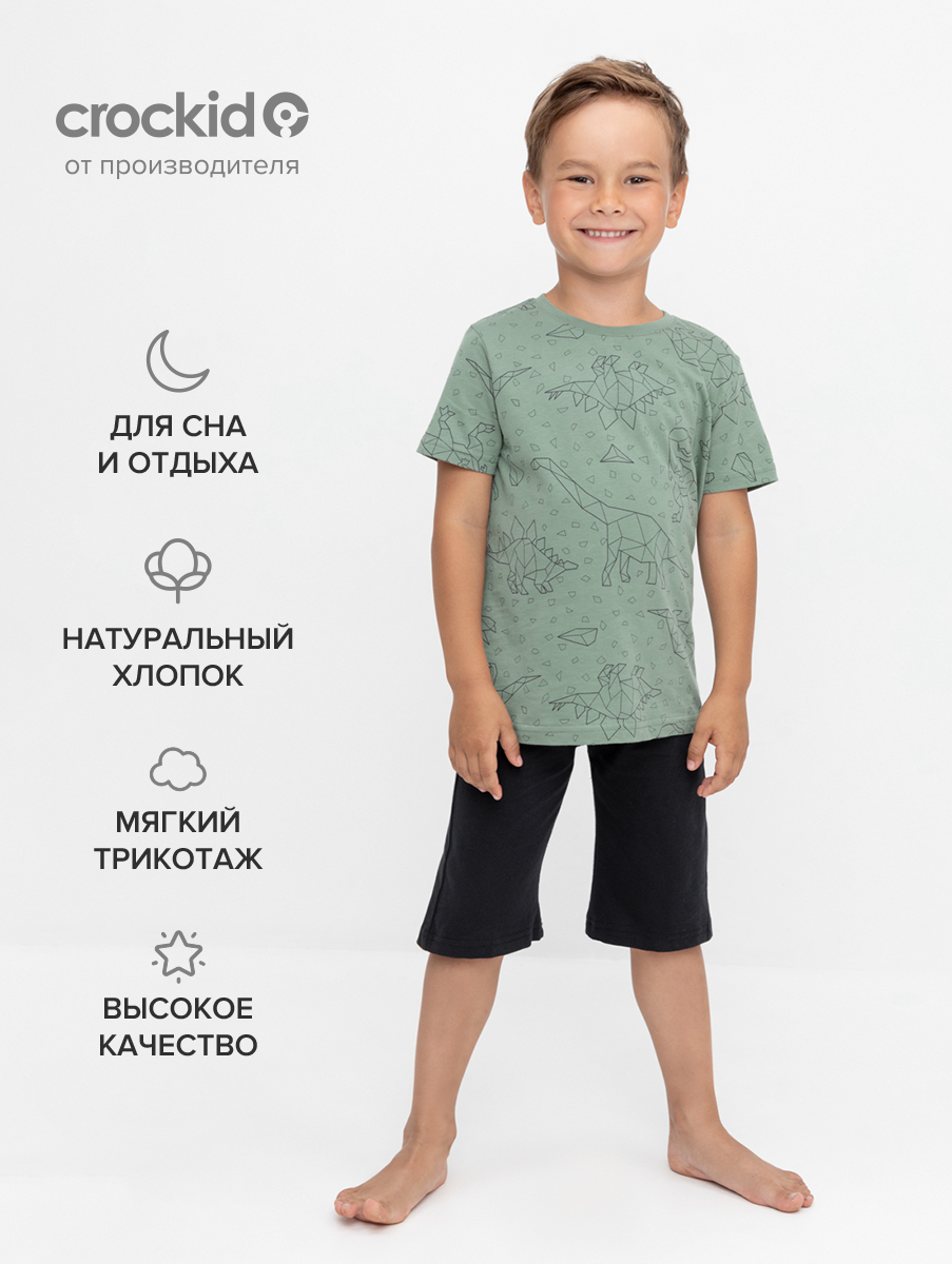 Пижама crockid К 1614/динозавры на зеленом,черный, размер 64/122, зеленый, черный