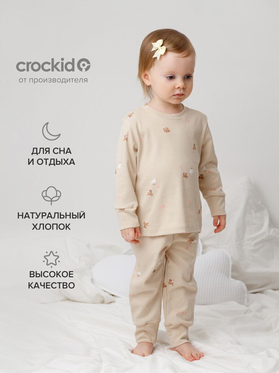 Пижама crockid К 1552/бежевый,зайчата в деревне, размер 52/86, бежевый