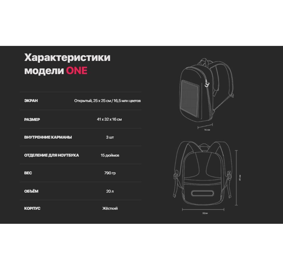 СохранитьРюкзак с LED-Дисплеем Pixel ONE, цвет серый (GRAFIT) обновленная модель интересное: