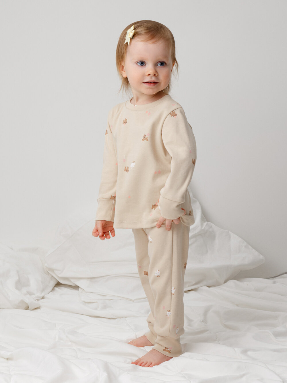 Пижама crockid К 1552/бежевый,зайчата в деревне, размер 52/86, бежевый