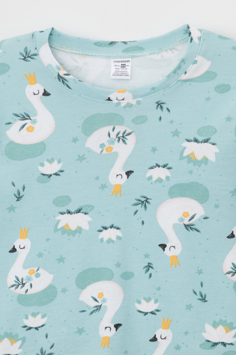 Купить Пижама crockid К 1552/сказочные лебеди на морозном шалфее, размер 52/92, бирюзовый