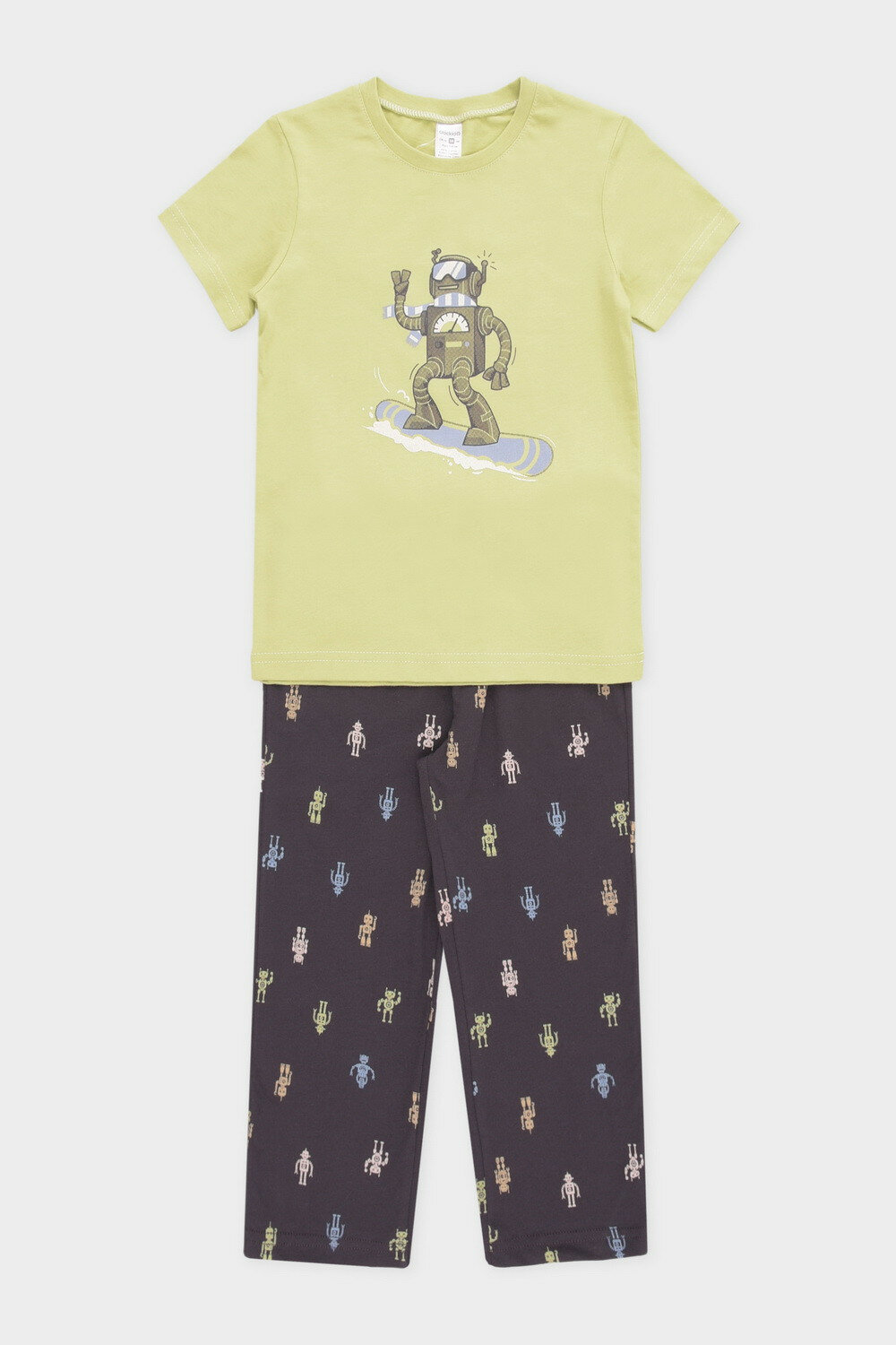 Пижама crockid К 1599/лаймовый крем,цветные роботы, размер 80/152, зеленый
