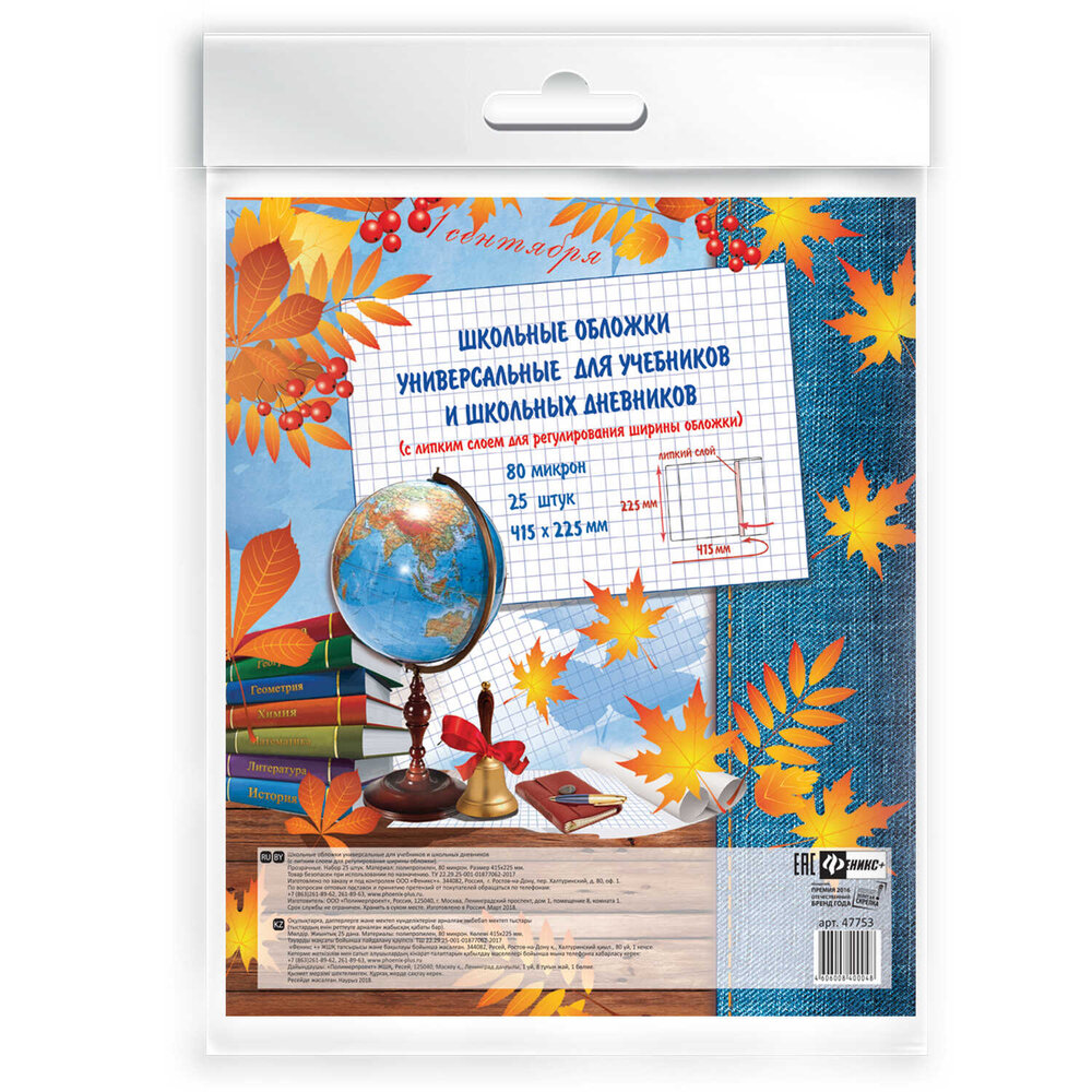 Феникс+ Обложки универсальные с липким слоем (415x225 мм), 25 штук прозрачный интересное: