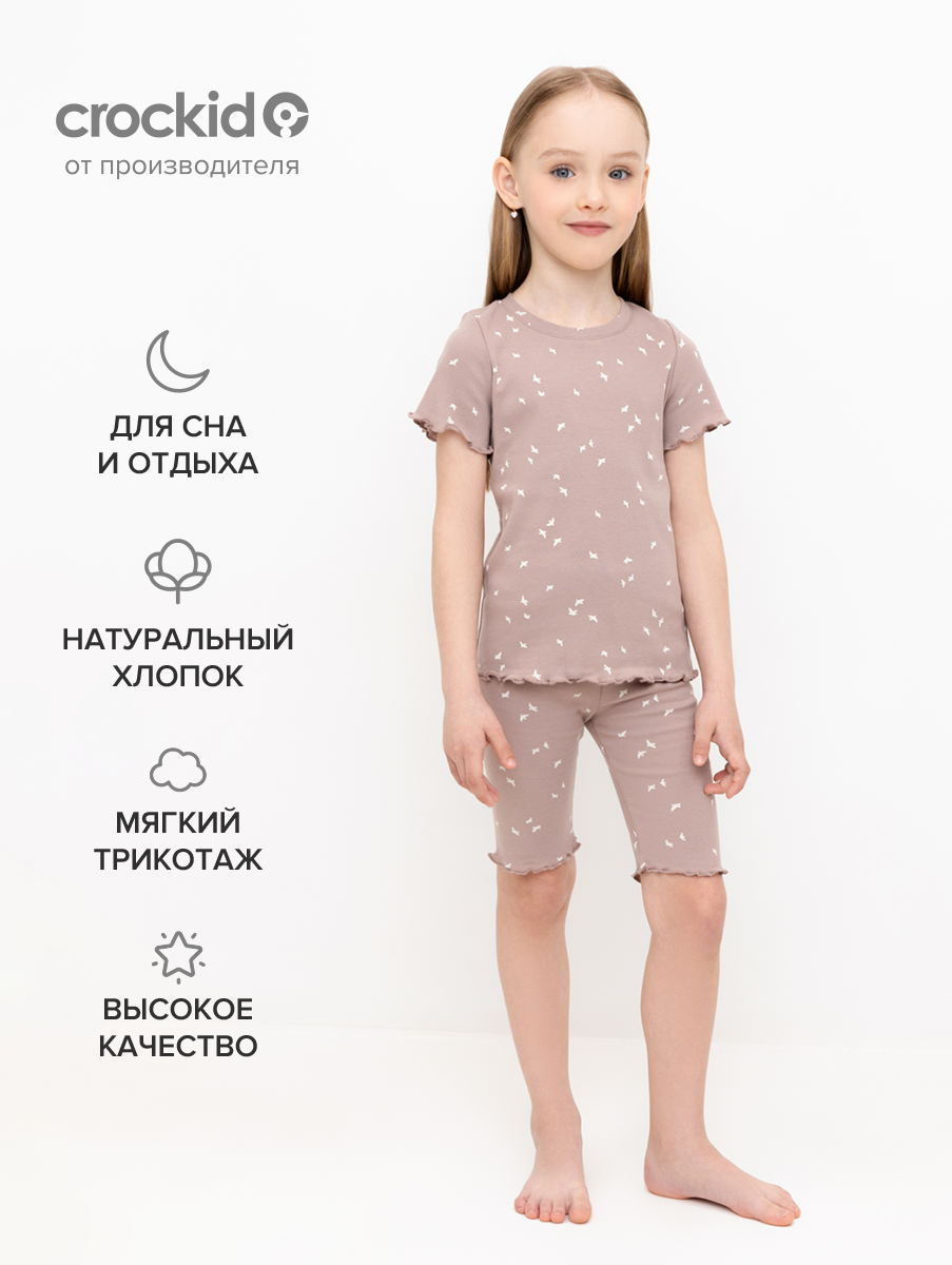 Пижама crockid К 1632/беж,колокольчики, размер 64/128, коричневый