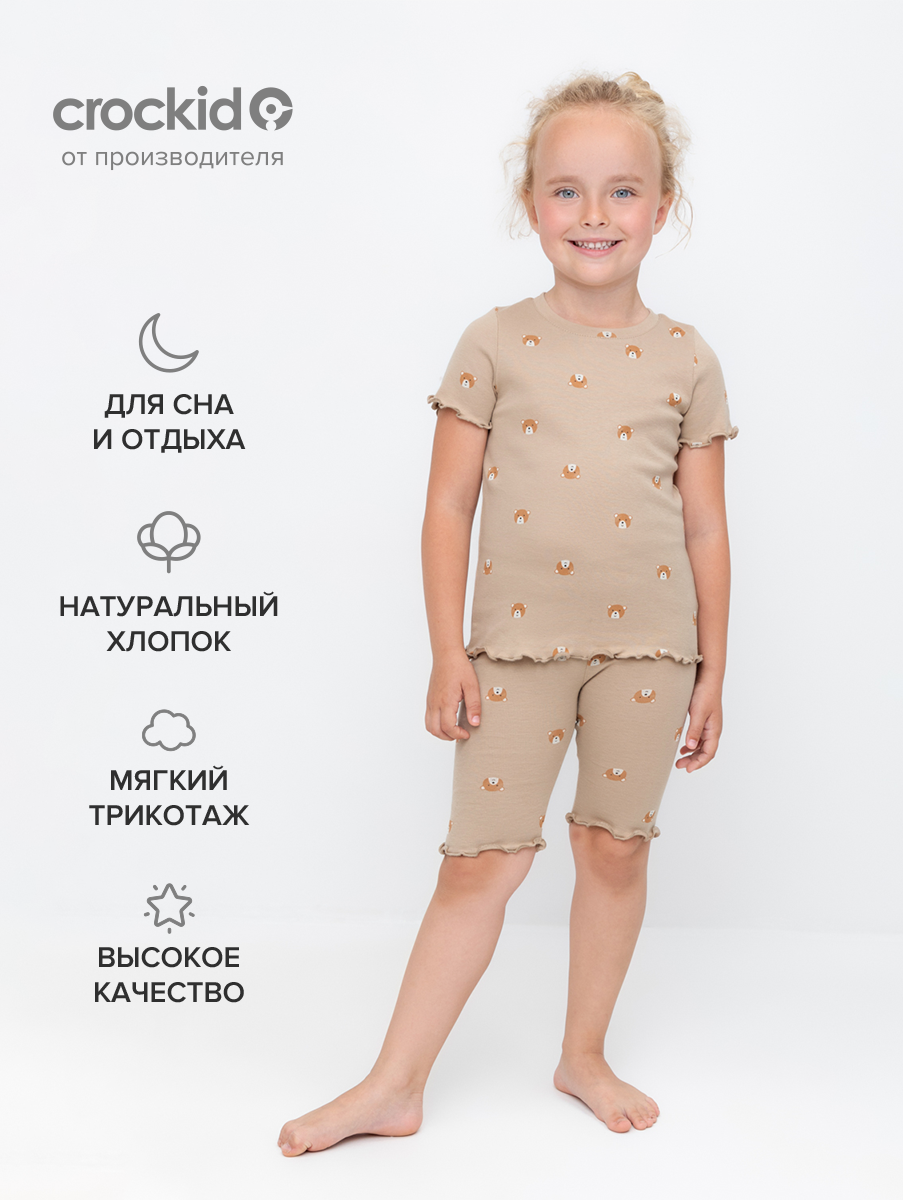 Пижама crockid К 1632/темно-бежевый,медвежонок, размер 68/134, бежевый