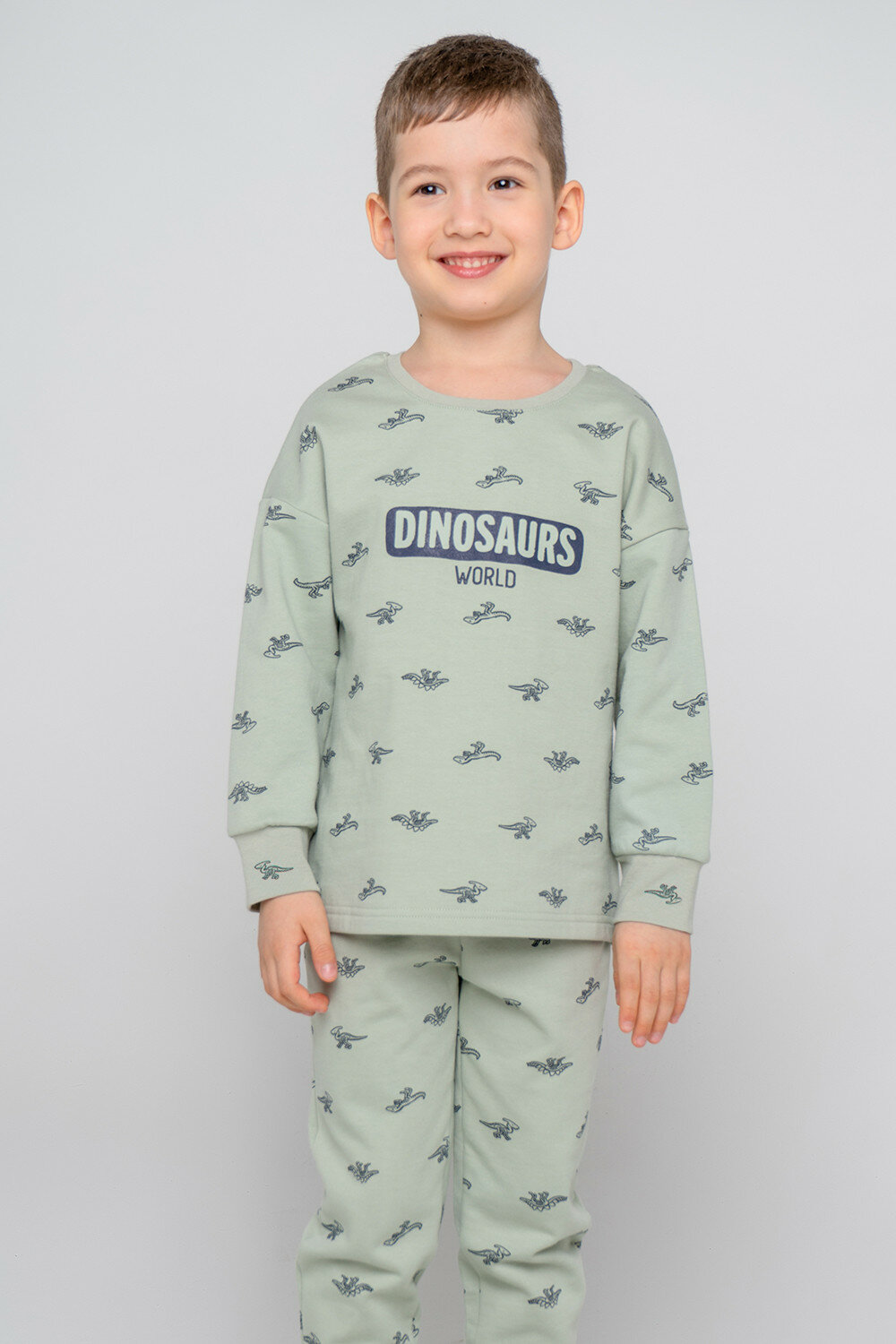 Пижама crockid К 1567/зеленый мох,динозавры, размер 64/128, зеленый