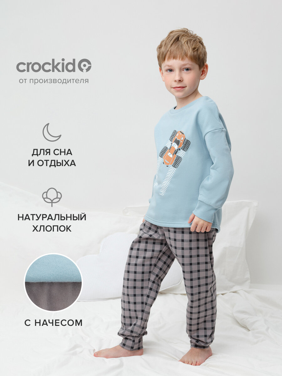 Пижама crockid К 1567/голубой,клетка, размер 72/140, голубой