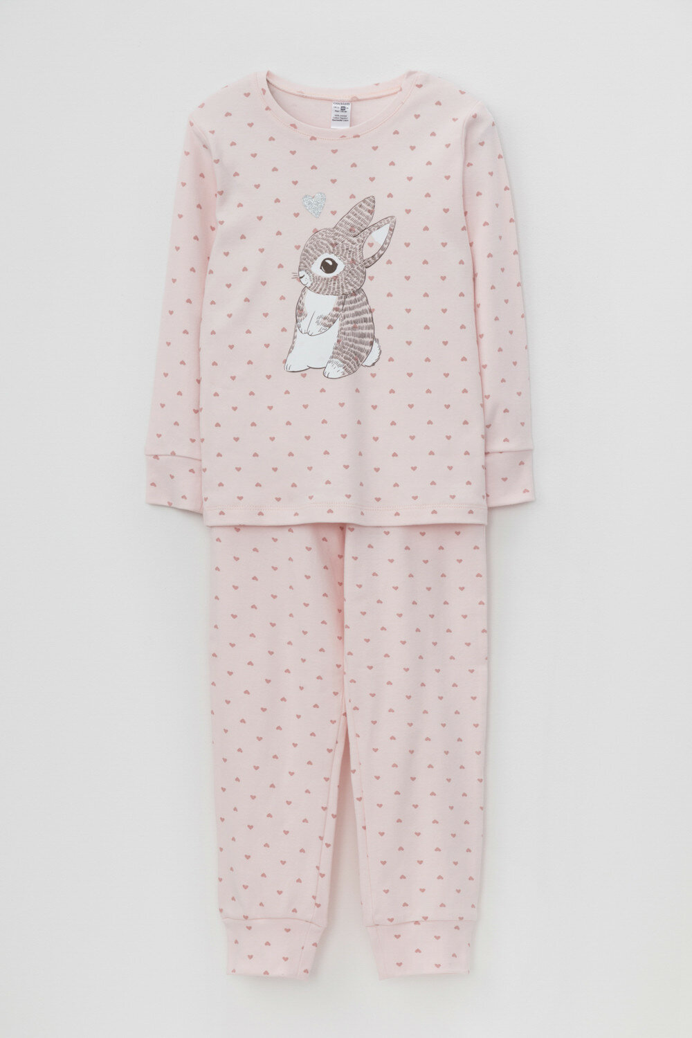 Пижама crockid К 1552/зайчики и сердечки на нежно-розовом, размер 72/140, розовый