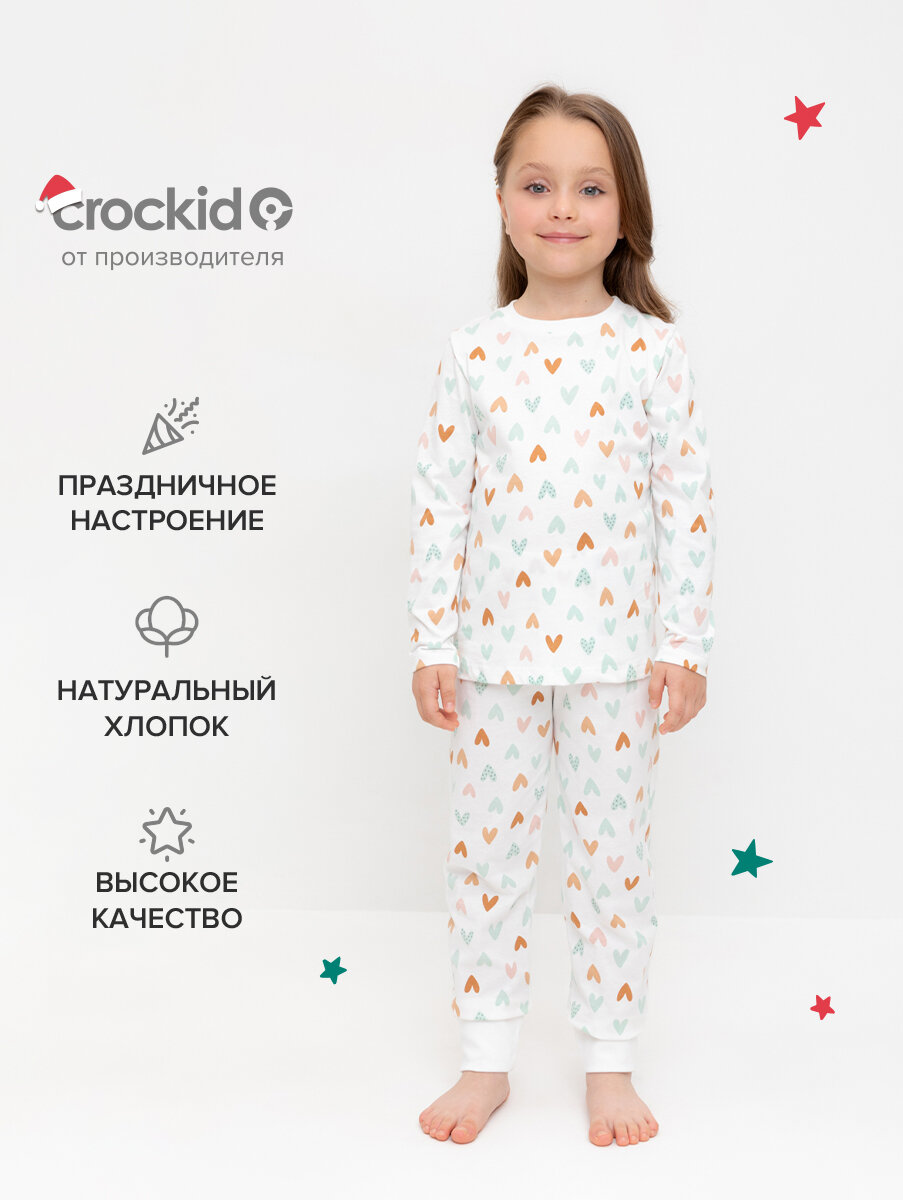 Купить Пижама crockid К 1561/конфетти из сердечек на сахаре, размер 64/128, белый