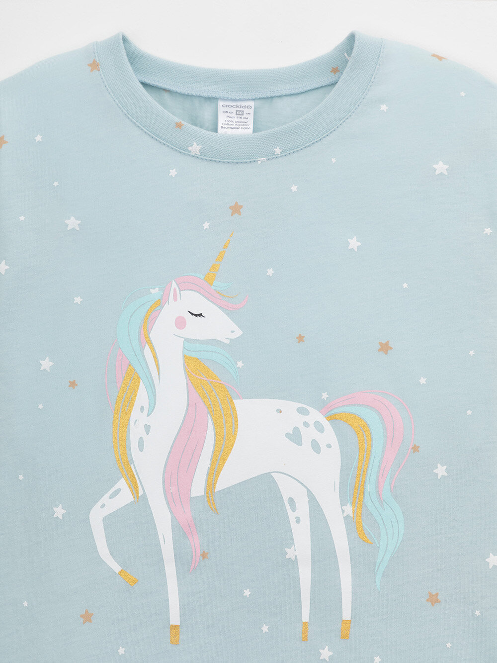 Пижама crockid К 1637/зимнее небо,звездочки, размер 72/140, голубой