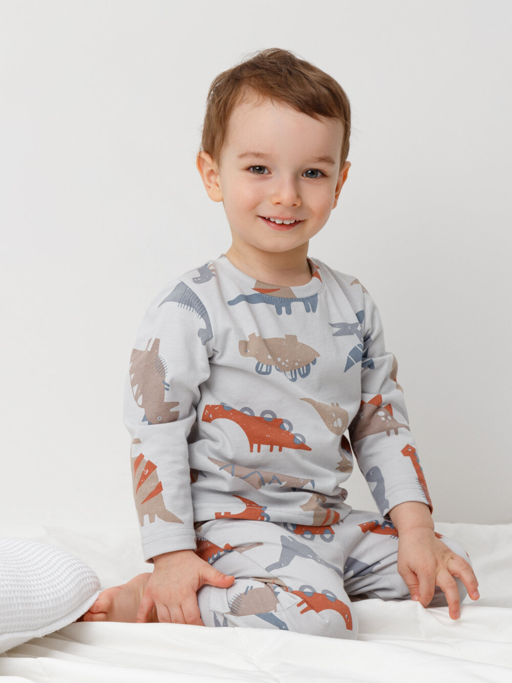 Пижама crockid К 1561/речной перламутр,динозавры, размер 56/98, серый