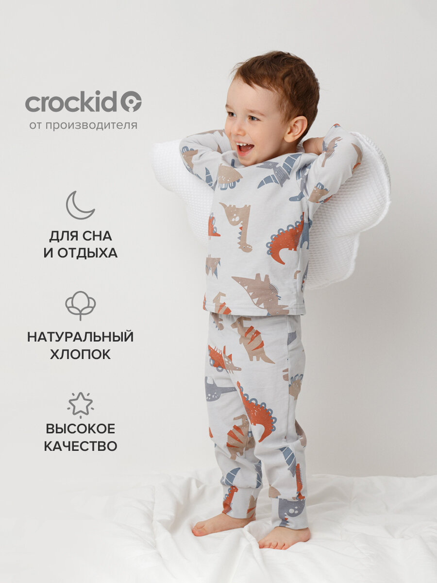 Купить Пижама crockid К 1561/речной перламутр,динозавры, размер 52/92, серый