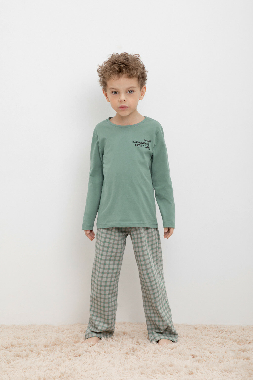 Пижама crockid К 1600-1/весенний зеленый,бежевая клетка, размер 64/128, зеленый