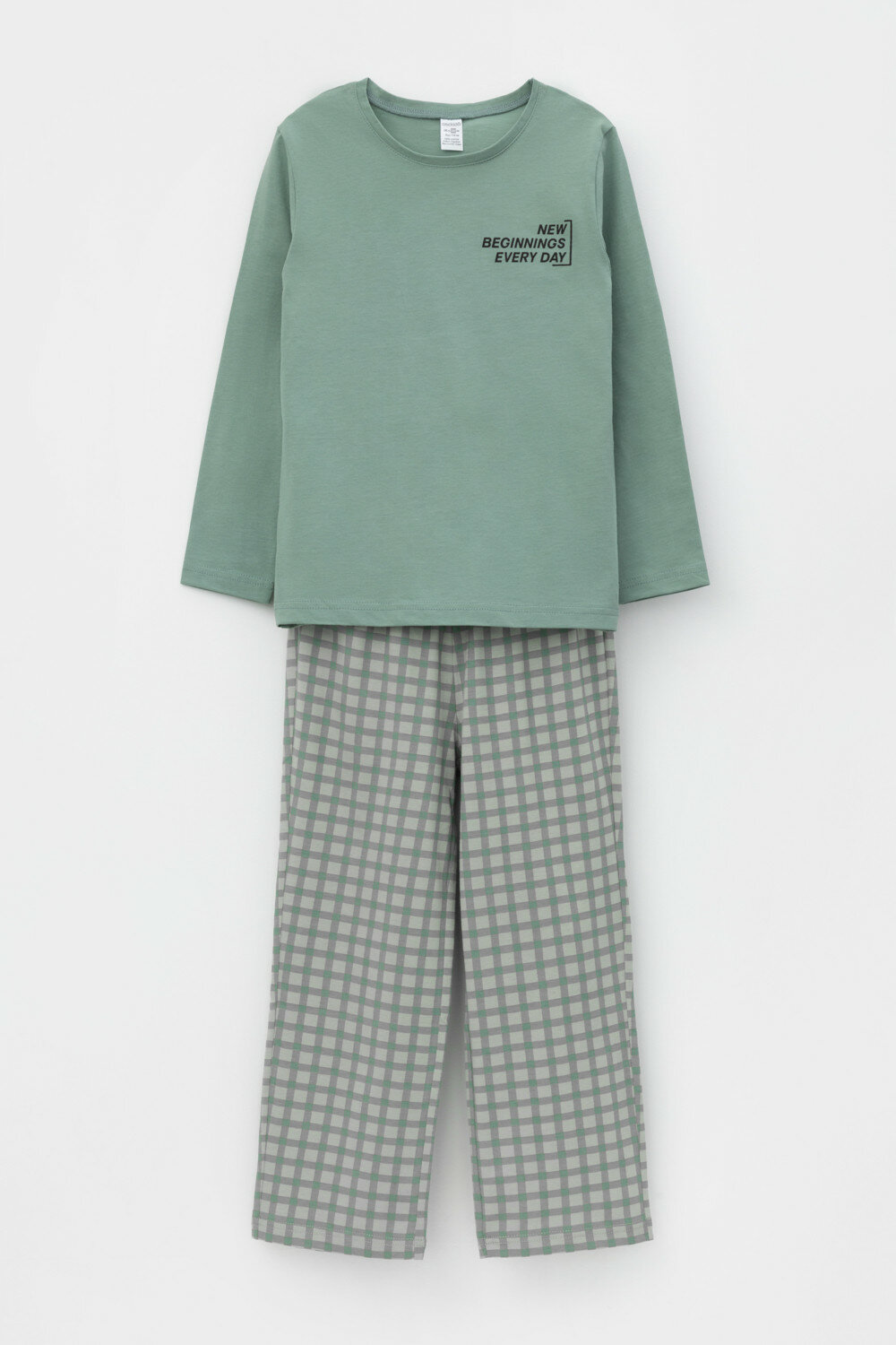 Пижама crockid К 1600/весенний зеленый,бежевая клетка, размер 60/116, зеленый