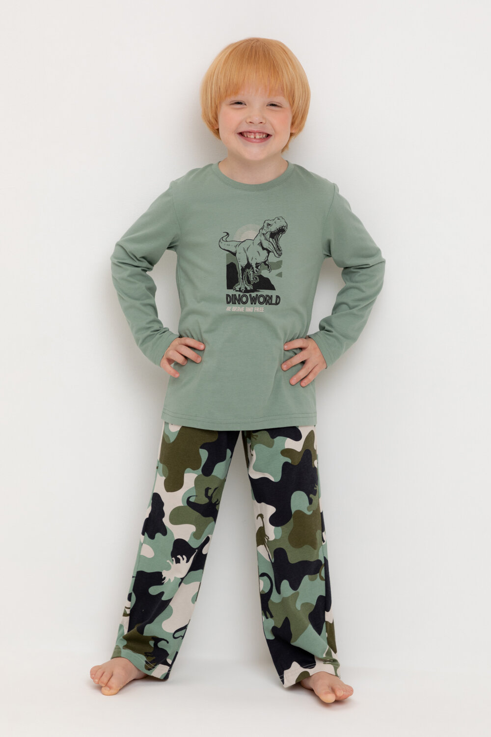 Пижама crockid К 1600/эвкалипт,камуфляж с динозаврами, размер 64/128, зеленый
