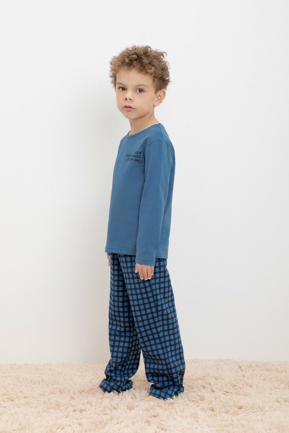 Пижама crockid К 1600-1/синяя волна,бежевая клетка, размер 64/128, синий