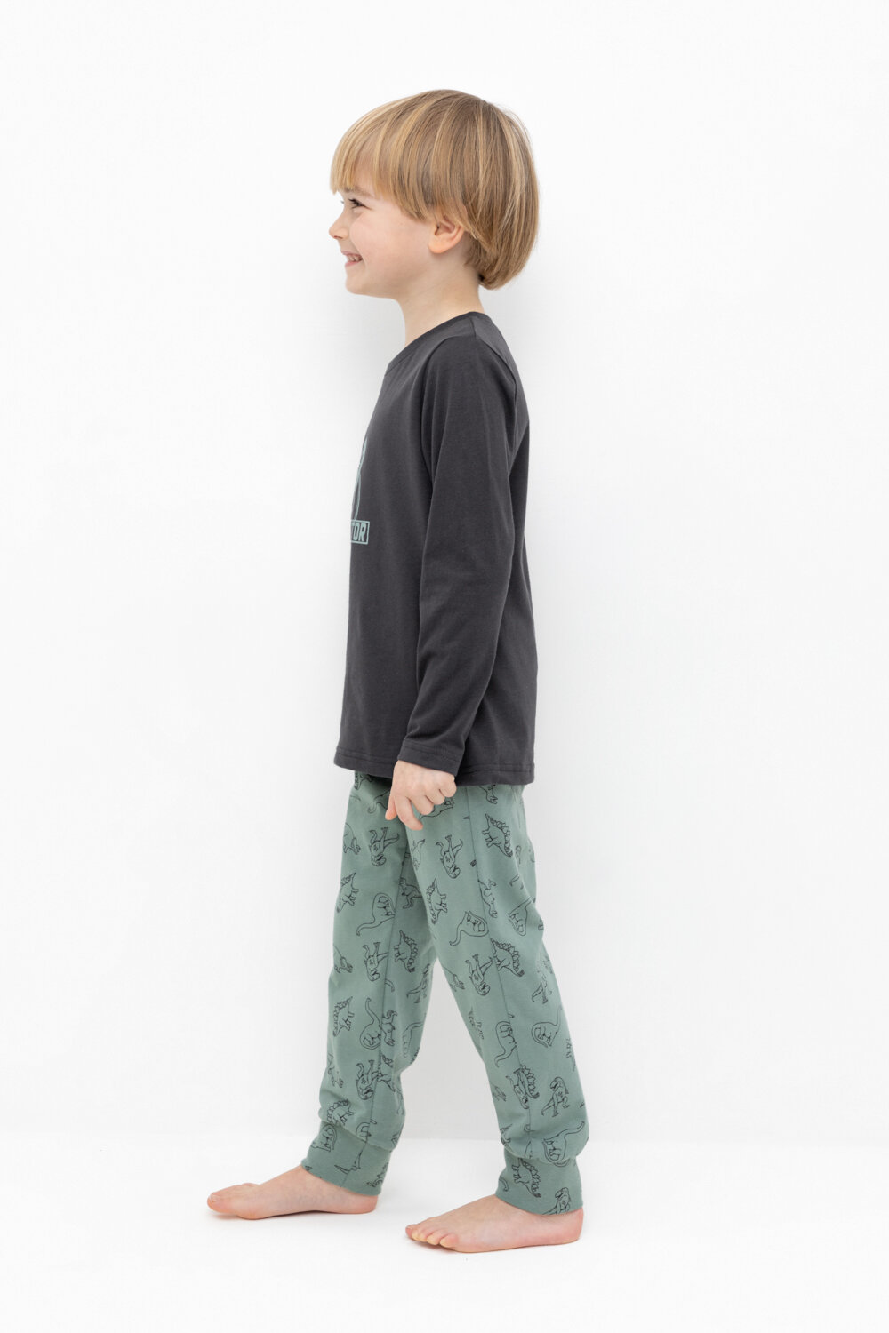 Пижама crockid К 1606/графит,дино друзья, размер 64/122, зеленый, серый