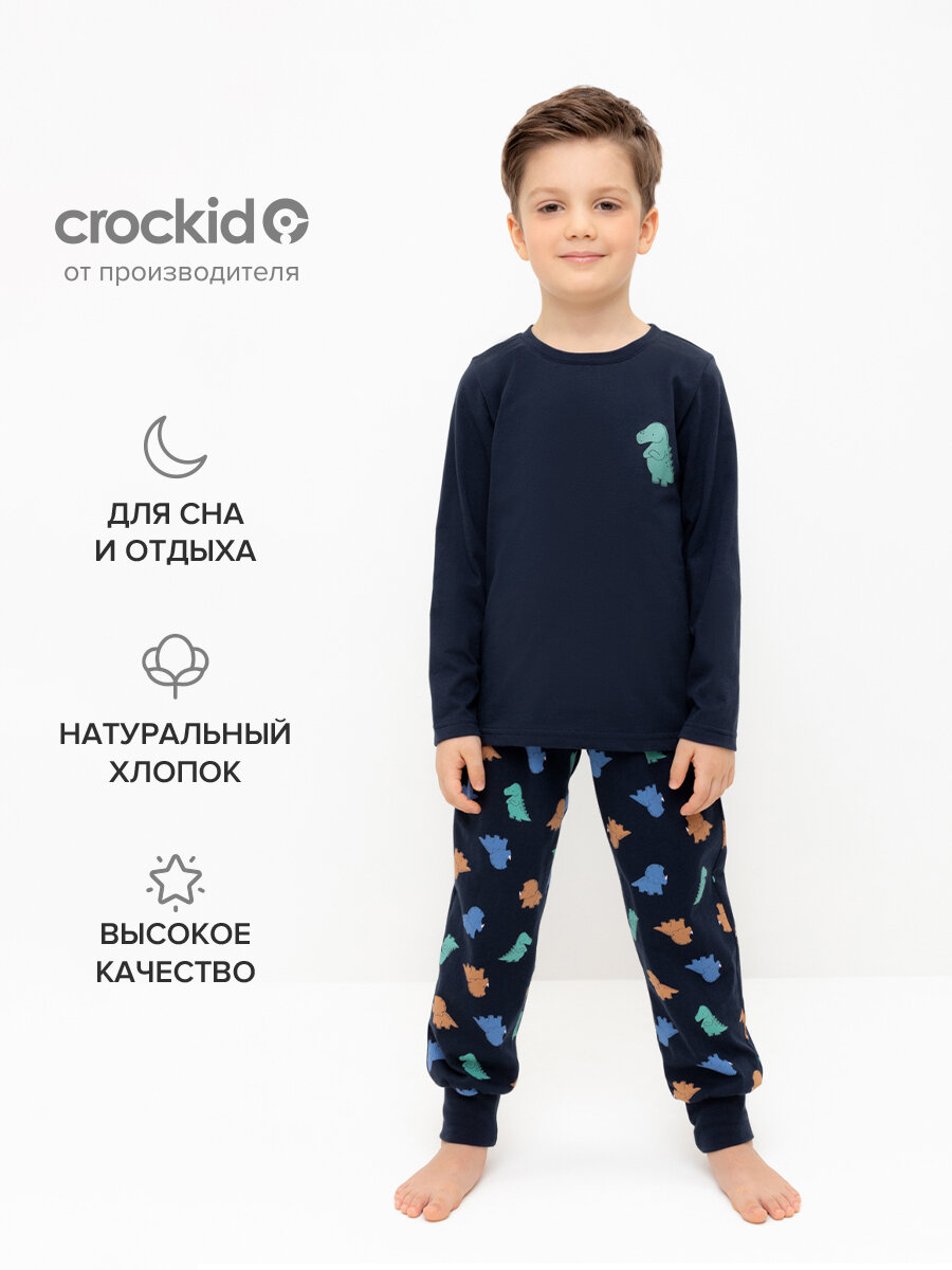 Купить Пижама crockid К 1606/индиго,цветные мини дино, размер 64/128, синий