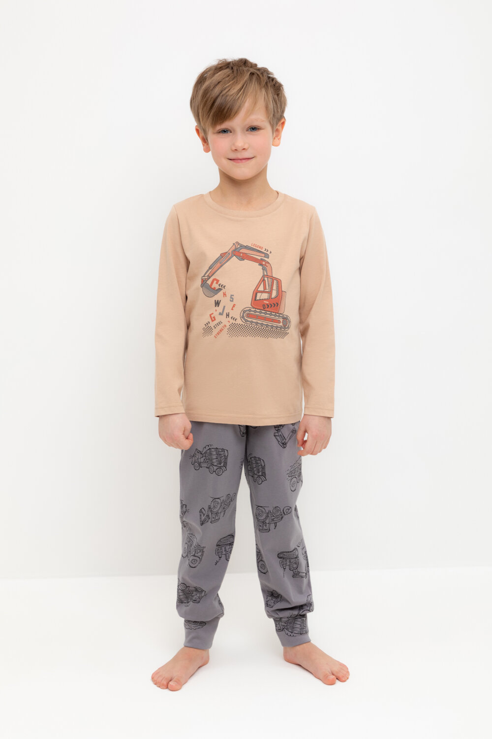 Пижама crockid К 1606/кунжут,дорожная техника, размер 56/104, серый, бежевый