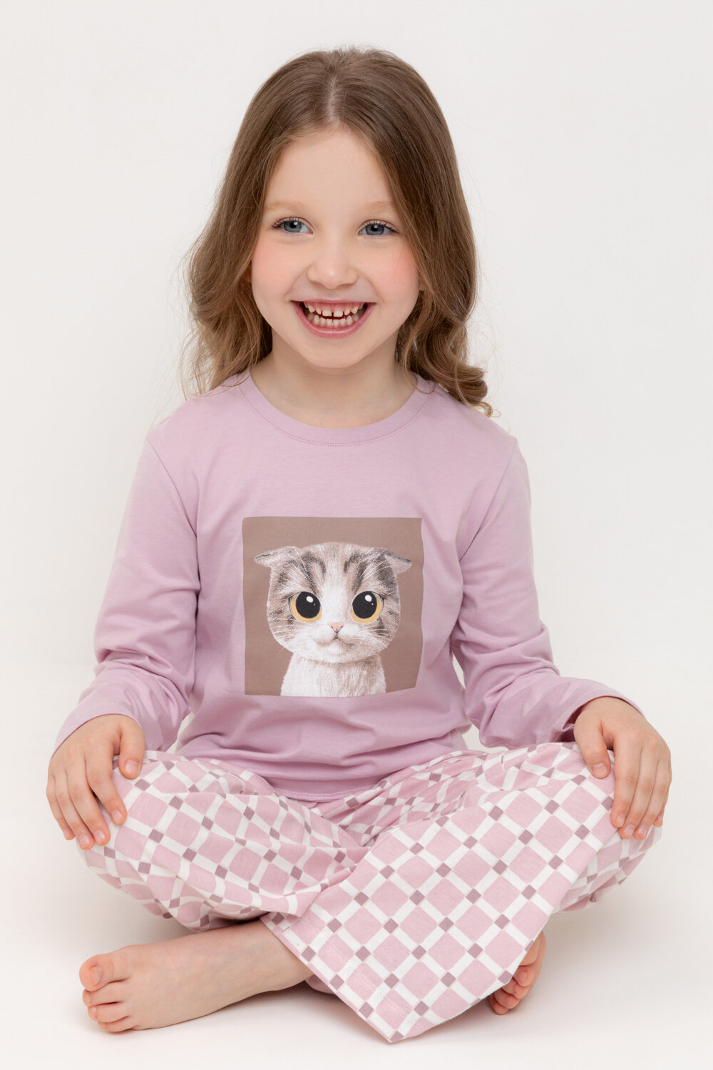 Пижама crockid К 1623/лепесток орхидеи,двойная клетка, размер 80/152, фиолетовый