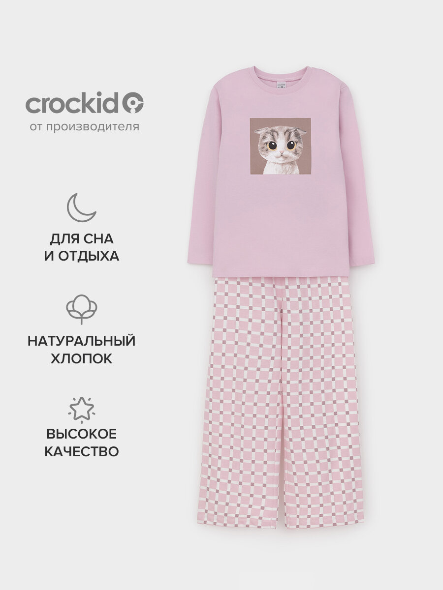 Пижама crockid К 1623/лепесток орхидеи,двойная клетка, размер 80/152, фиолетовый