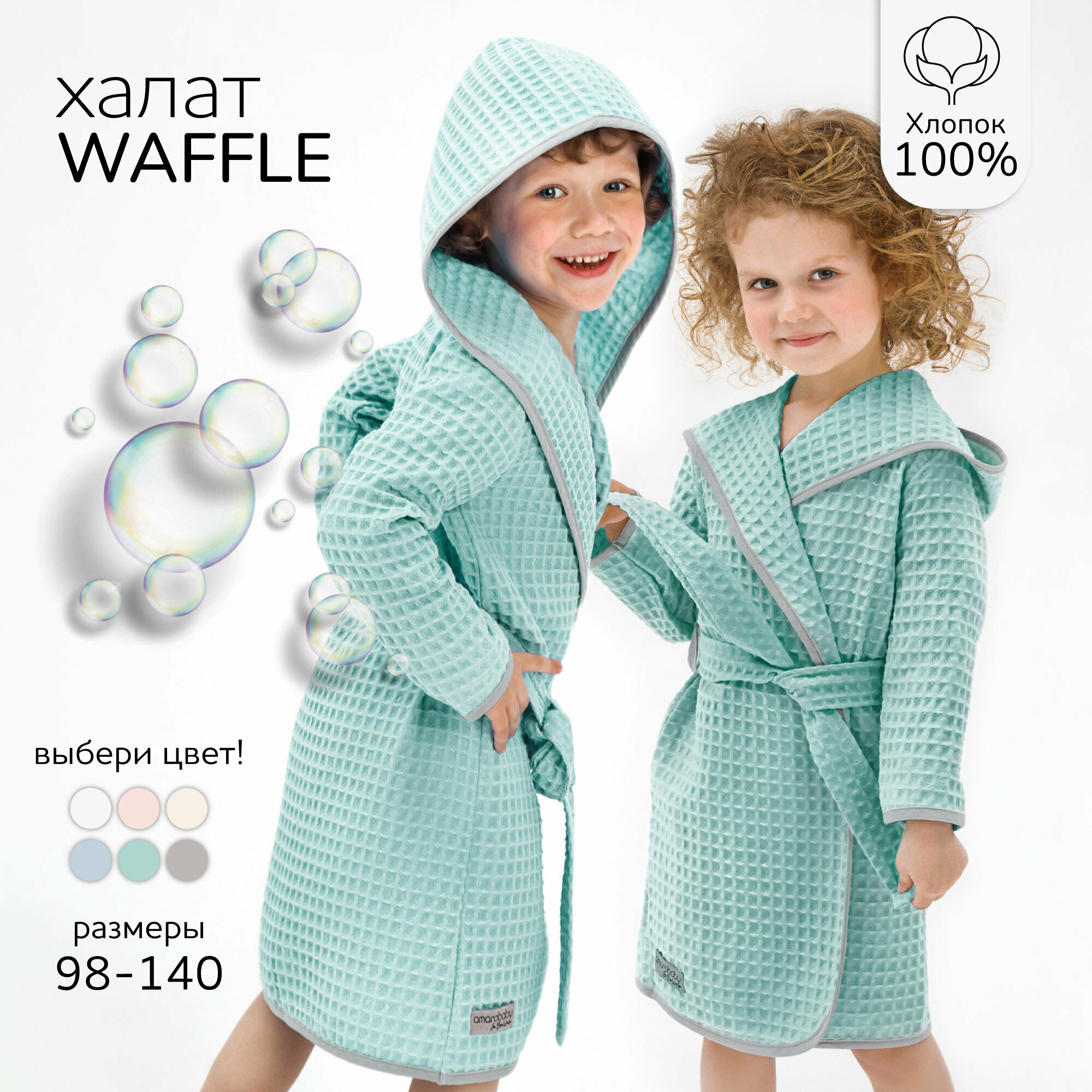 Халат Amarobaby, размер 122, мятный интересное: