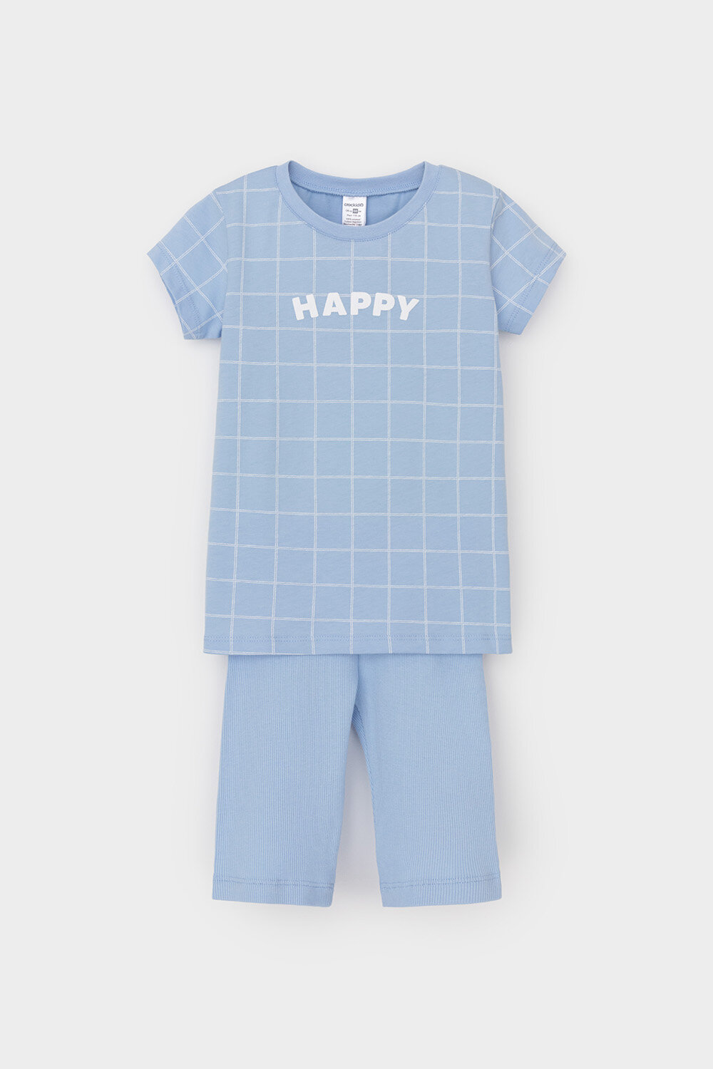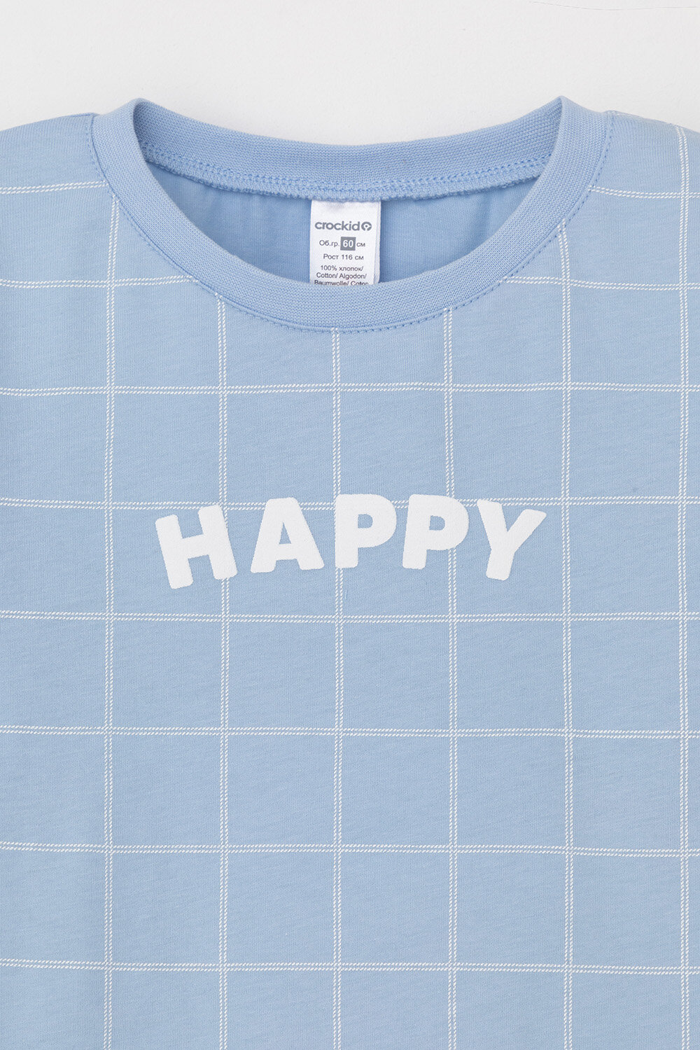 Пижама crockid К 1643/небесно-голубой,двойная клетка, размер 72/140, голубой