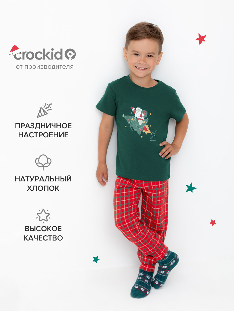 Купить Пижама crockid К 1554/тем.зеленый,клетка, размер 60/116, зеленый