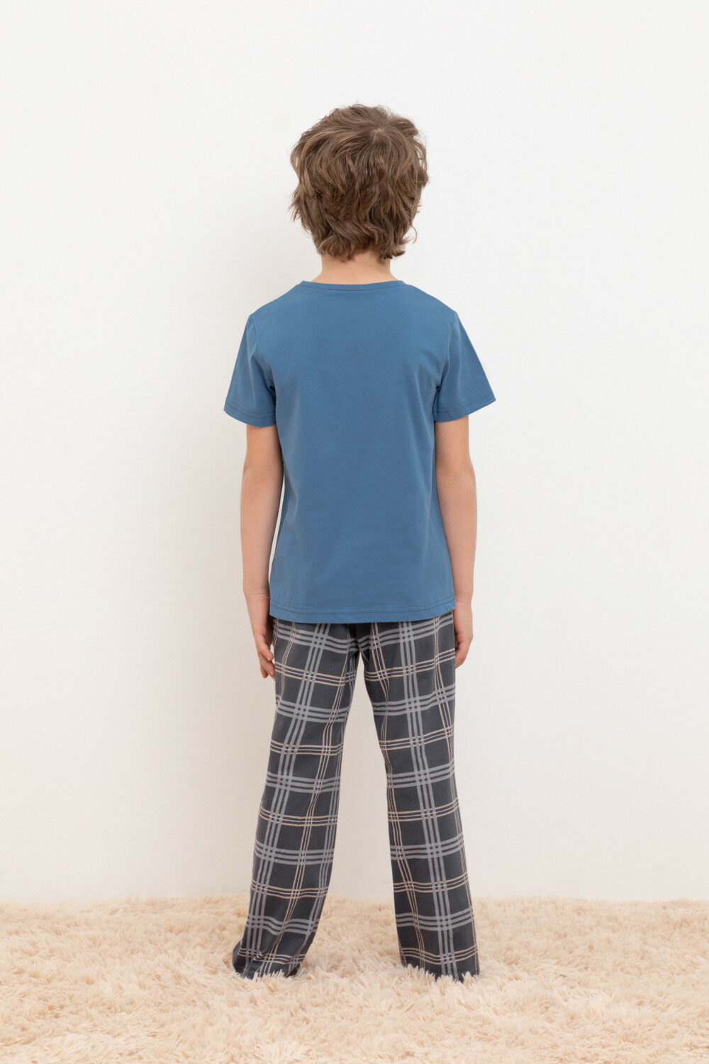 Пижама crockid К 1599/синяя волна,текстильная клетка, размер 64/122, синий