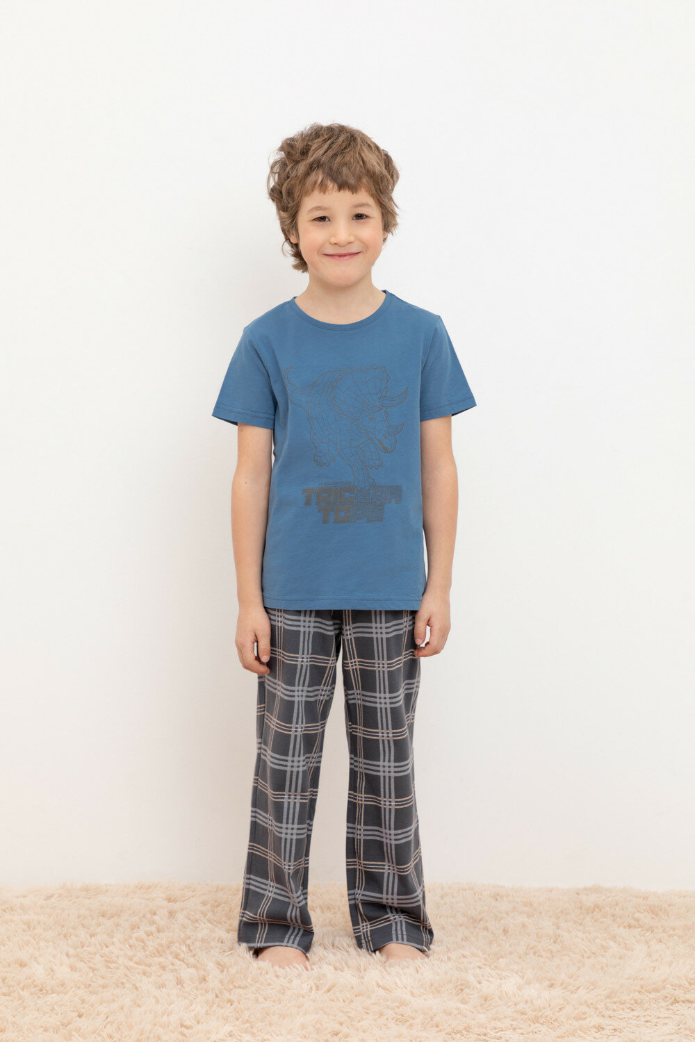 Пижама crockid К 1599/синяя волна,текстильная клетка, размер 64/122, синий
