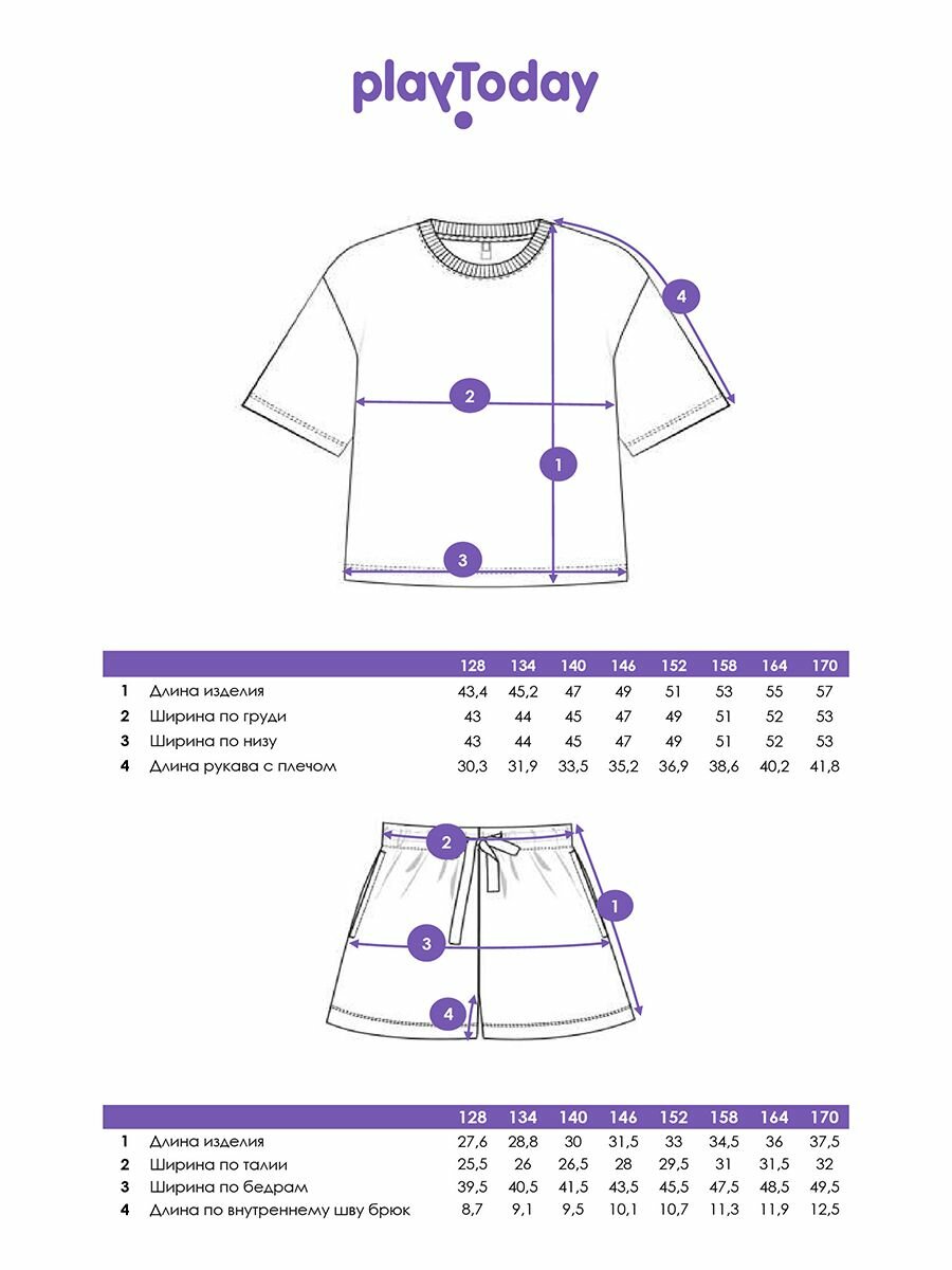 Пижама playToday Весна-лето 2025, размер 140, белый/черный