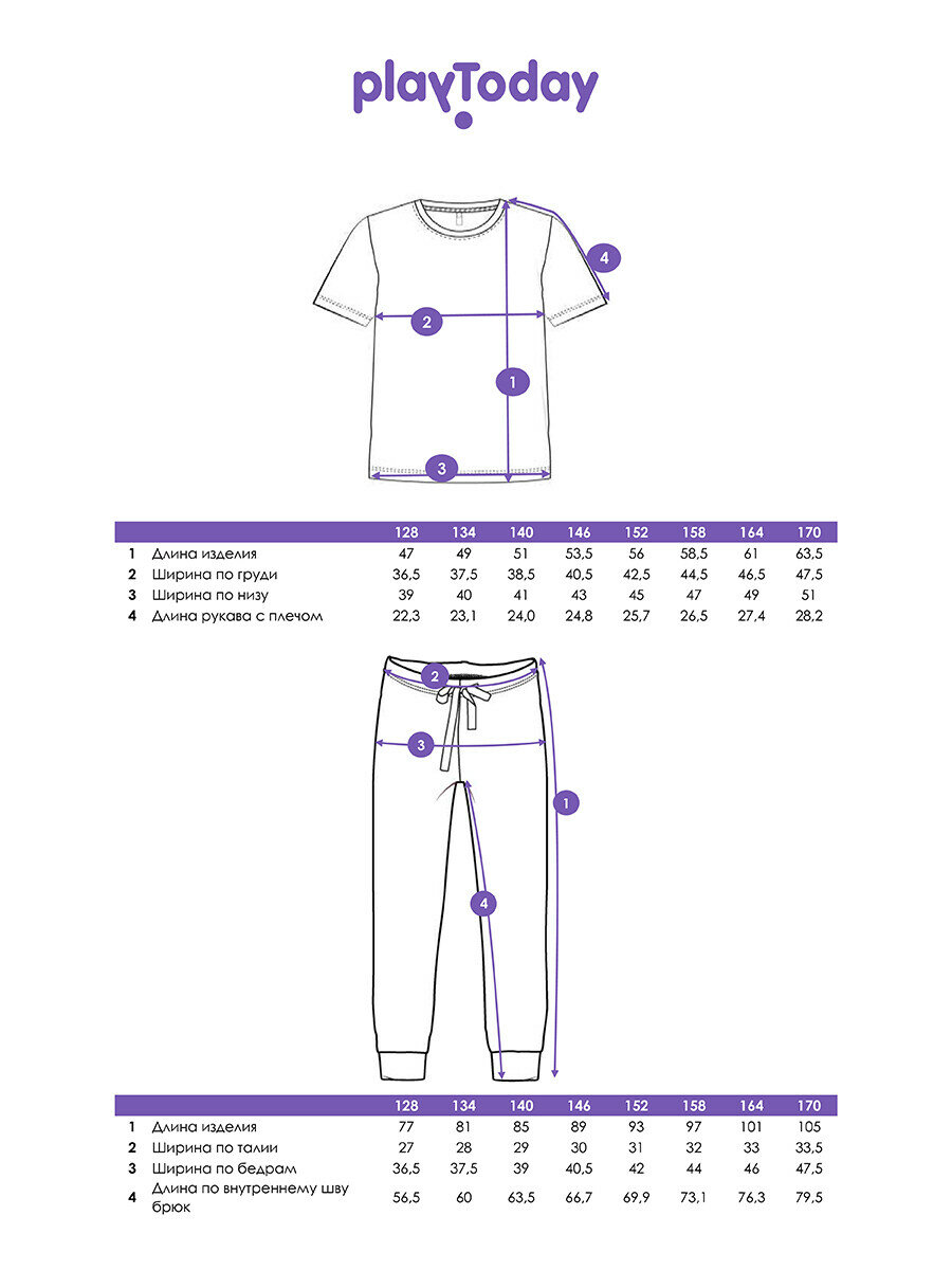 Пижама playToday, размер 146, черный интересное:
