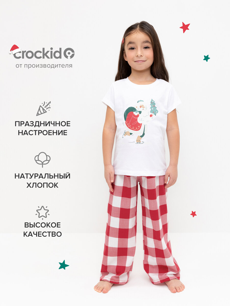 Пижама crockid К 1640/белый,клетка виши, размер 64/128, белый, красный
