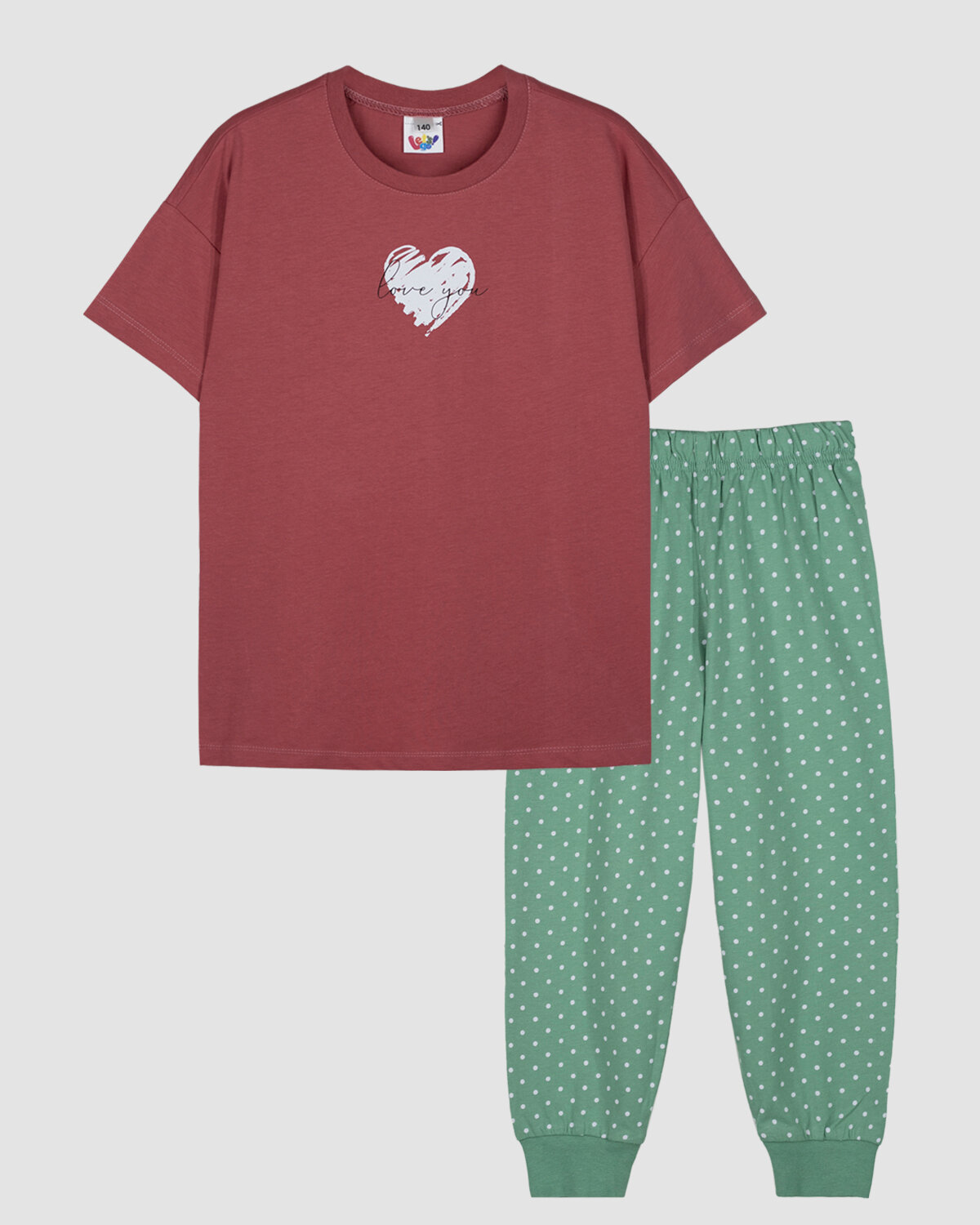 Пижама Let's Go, размер 140-72, зеленый, розовый, пыльная роза