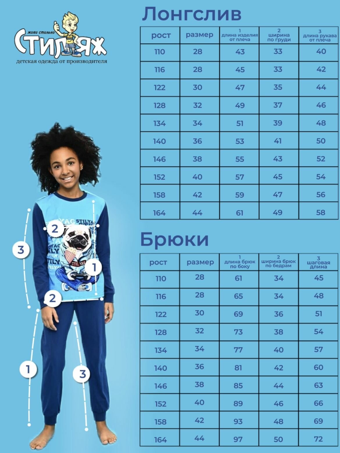 СохранитьПижама Стиляж, размер 146, Мопс синий интересное: