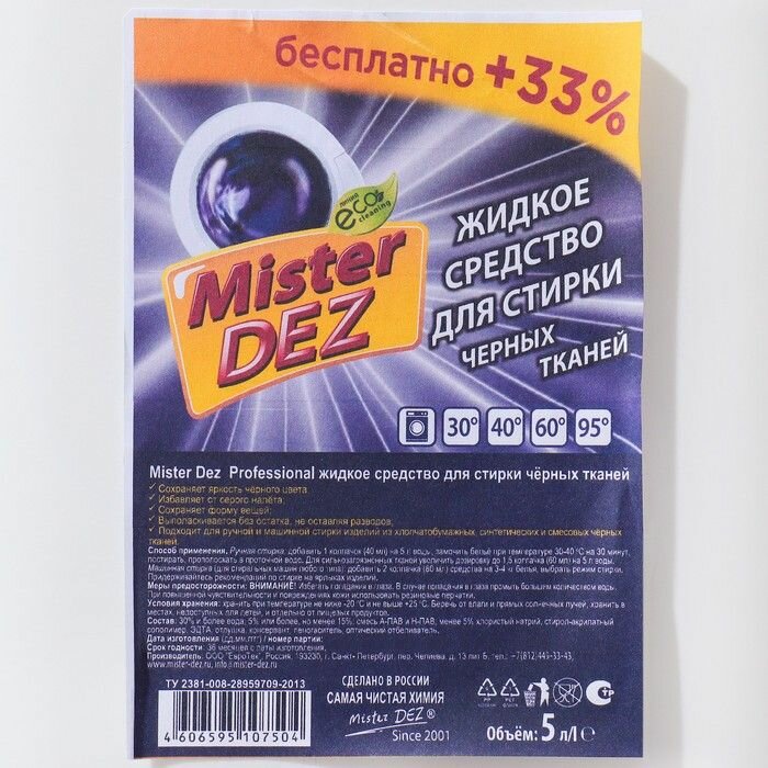Средство для стирки черных тканей Mister Dez Eco-Cleaning Professional, 5 л Mister DEZ 4560839 .