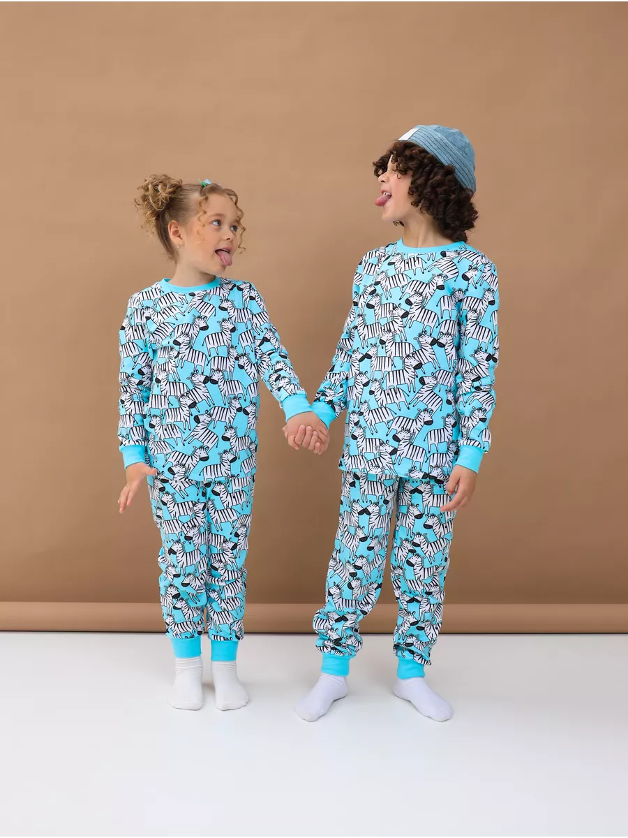 Пижама Miko Yumi, размер 128, черный, белый, голубой, зеленый